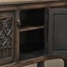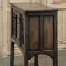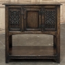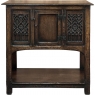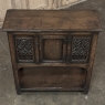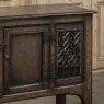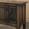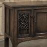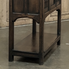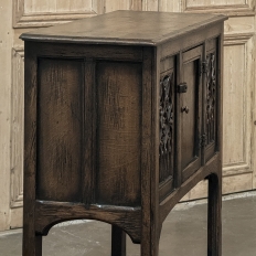 Antique Rustic Gothic Petite Raised Cabinet is the perfect choice for a cozy home, a small niche, under the stairwell or anywhere a diminutive yet timelessly stylish cabinet works. Hand-crafted from solid oak, it features steel strap hinges, and each door is carved by hand with different Gothic patterns, with a rectilinear framework that raises the cabinet off the floor providing an open display shelf.