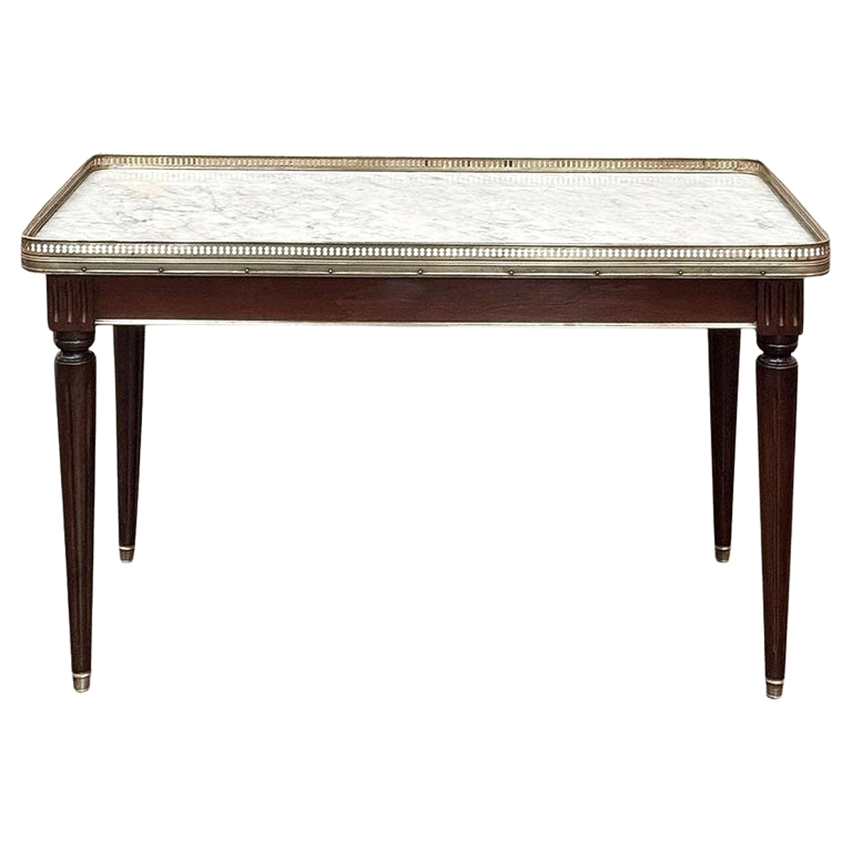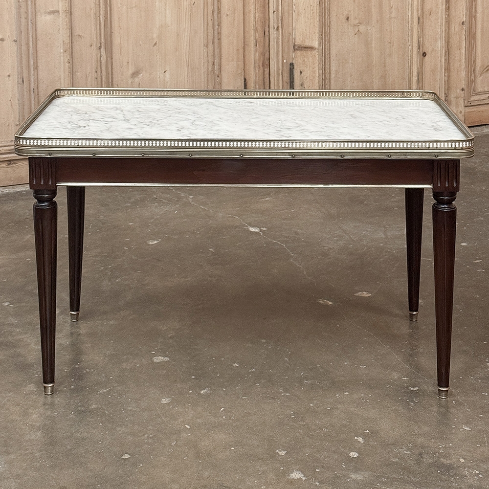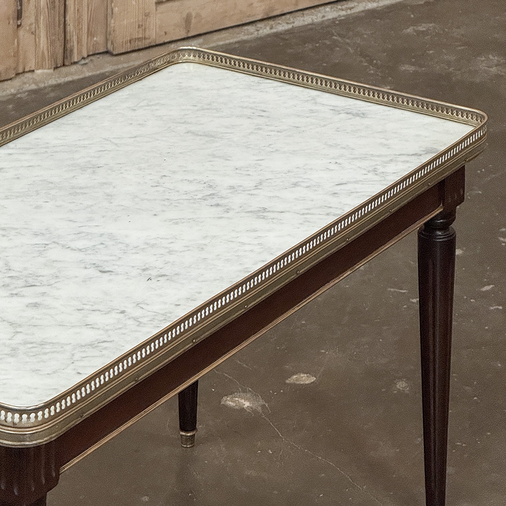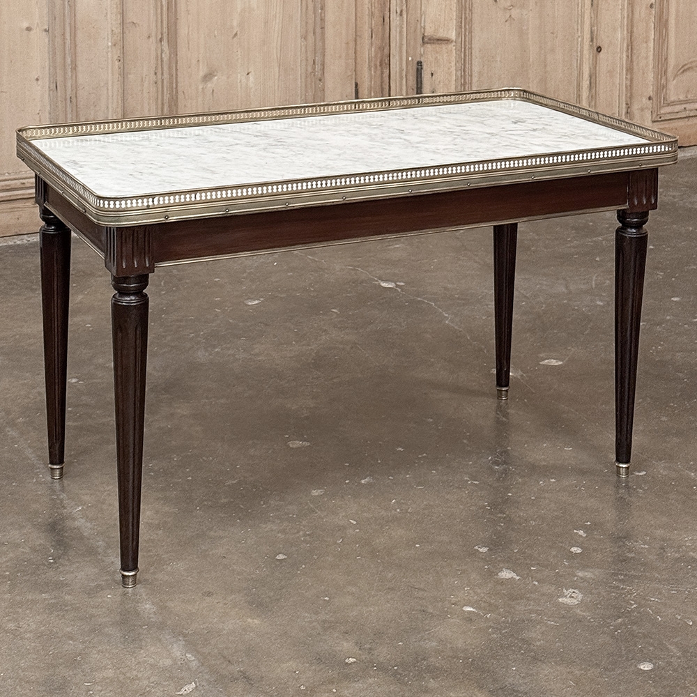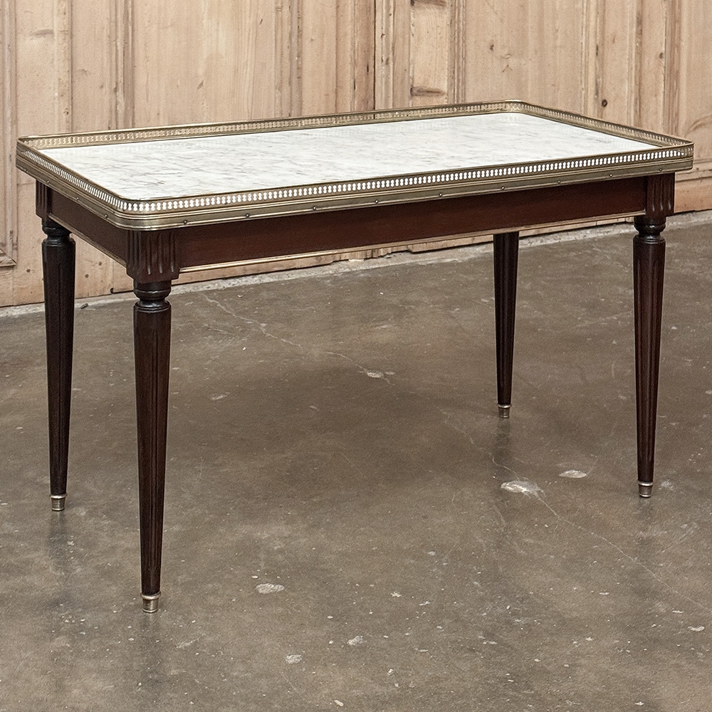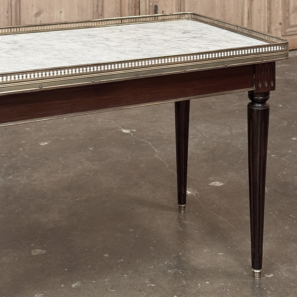 Antique French Louis XVI Mahogany Coffee Table with Carrara Marble
