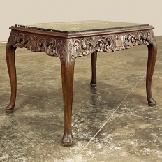 Antique Italian Baroque Fruitwood Marble Top Coffee Table