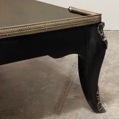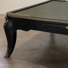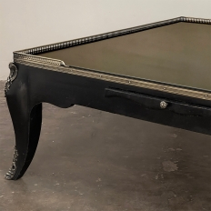 Grand Mid-Century French Black Enamel Coffee Table with Glass Top
