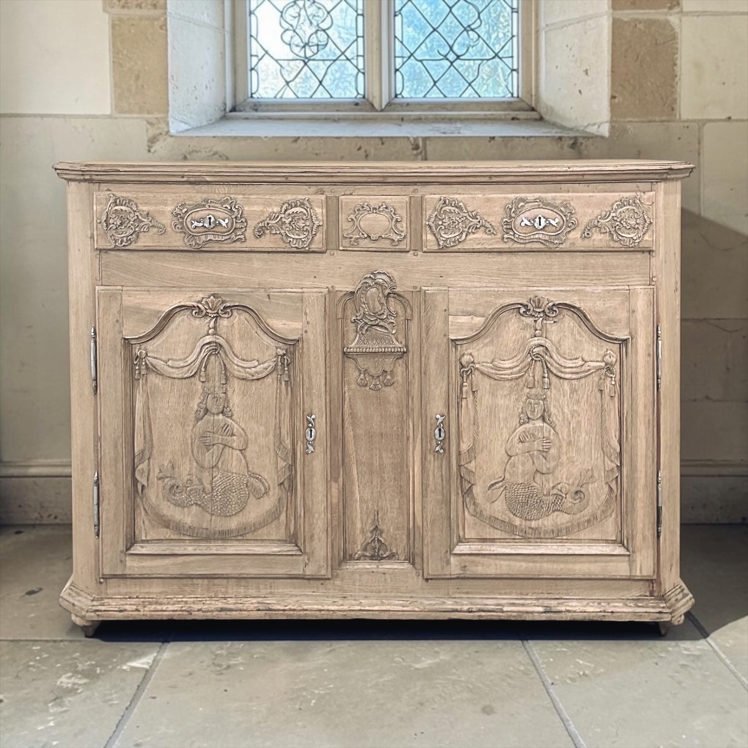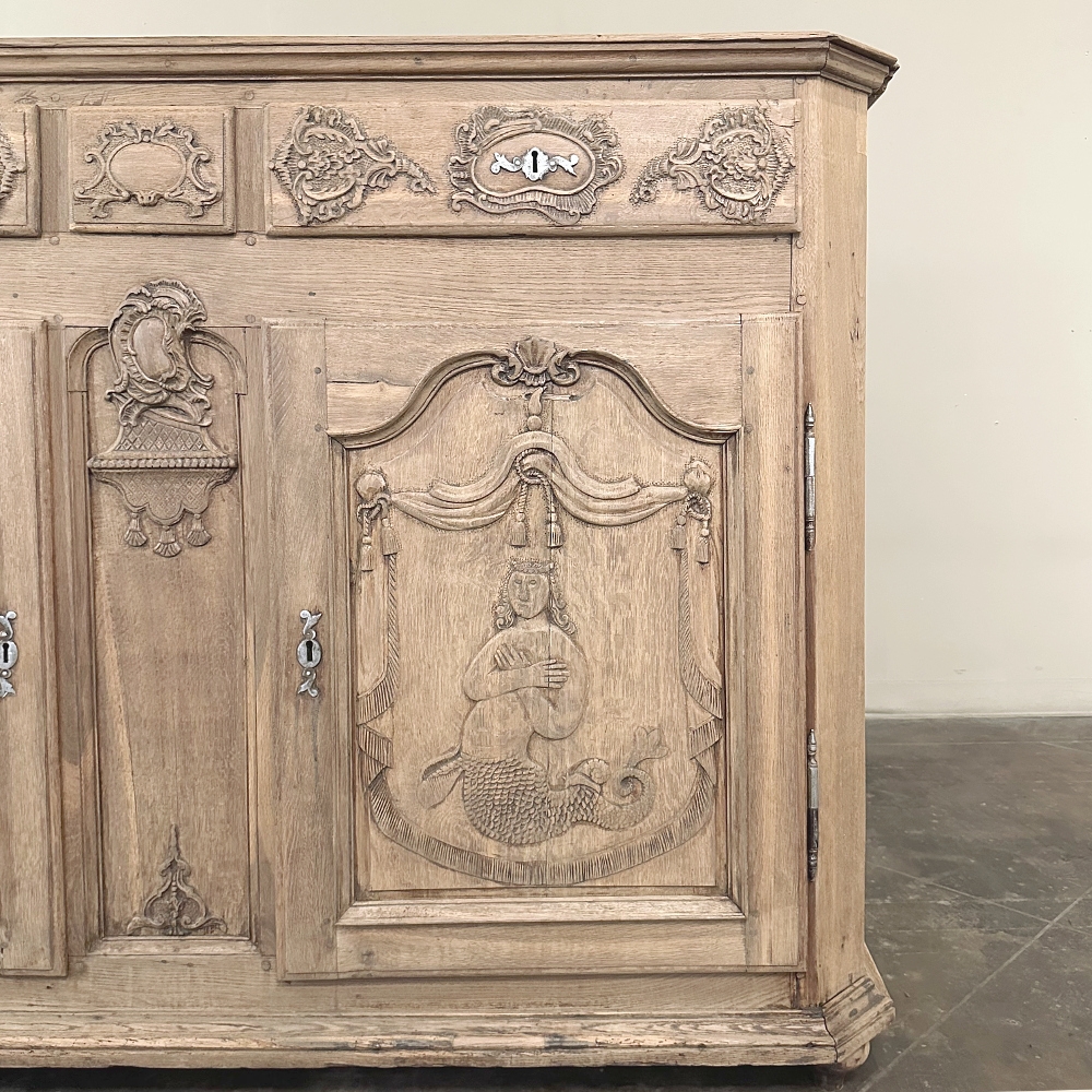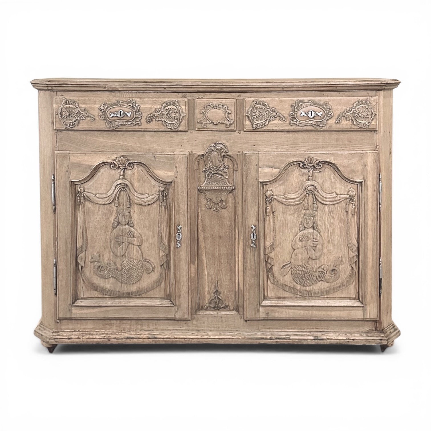 Early 18th Century Belgian Liègeois Régence Period Hand-Carved Stripped Oak Mermaid Buffet
