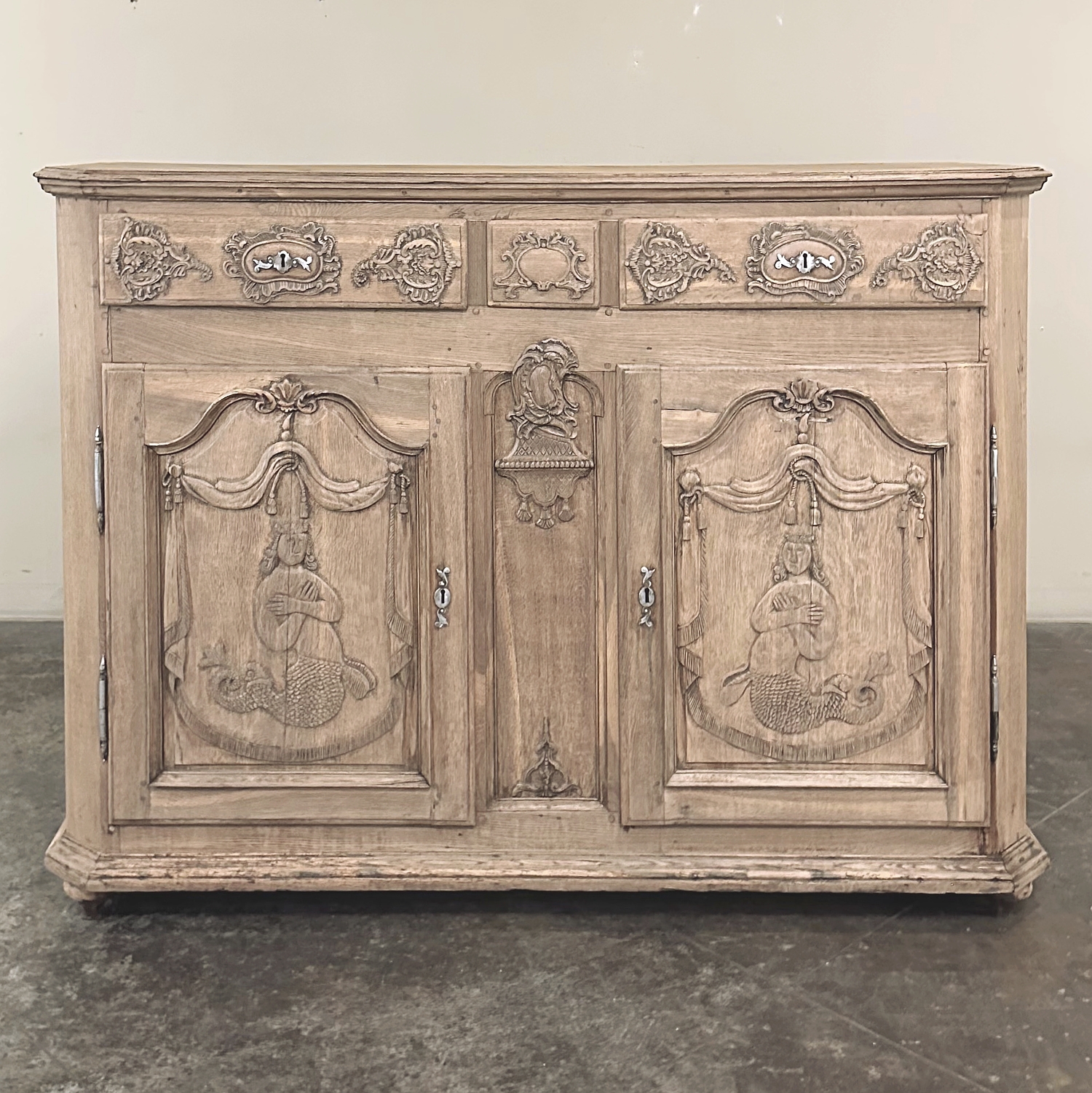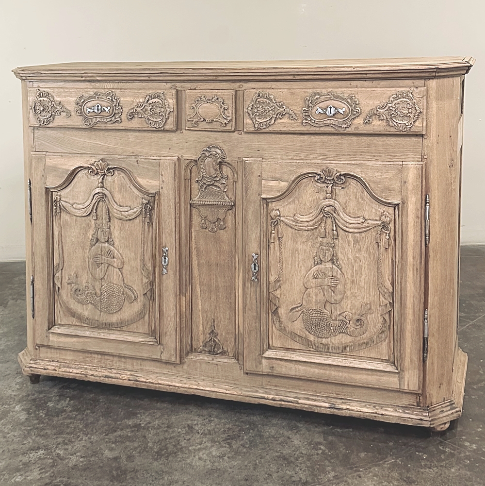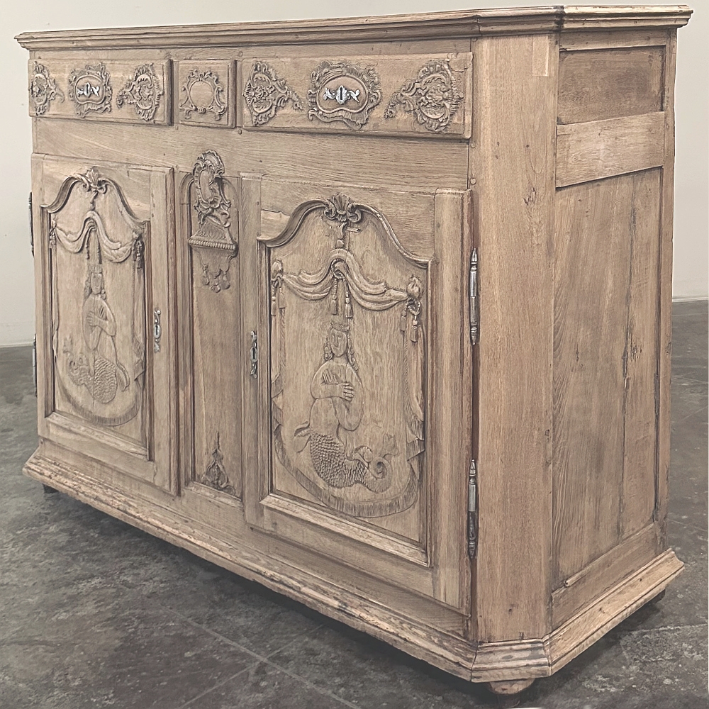 Early 18th Century Belgian Liègeois Régence Period Hand-Carved Stripped Oak Mermaid Buffet