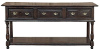 18th Century English Sideboard ~ Console ~ Sofa Table will make an excellent choice as a credenza as well! Hand-crafted from dense, old growth English oak to literally last for centuries, it was meticulously fashioned by talented artisans utilizing techniques handed down from generation to generation, including hand-planing and pegged mortise & tenon joinery. The solid plank top provides an excellent surface that at 18" deep allows it to work with high traffic patterns. Three spacious drawers with beveled facades face the room, each fitted with a brace of solid brass shield bale pulls. Even the small side panels are beveled for good visual looks from all angles. Support is provided by sturdy chamfered posts in the back, and hand-turned posts in the front, connected below by a full width shelf that provides even more display and storage opportunities.