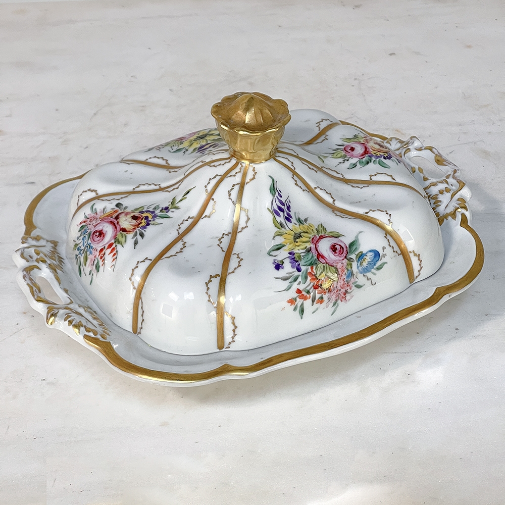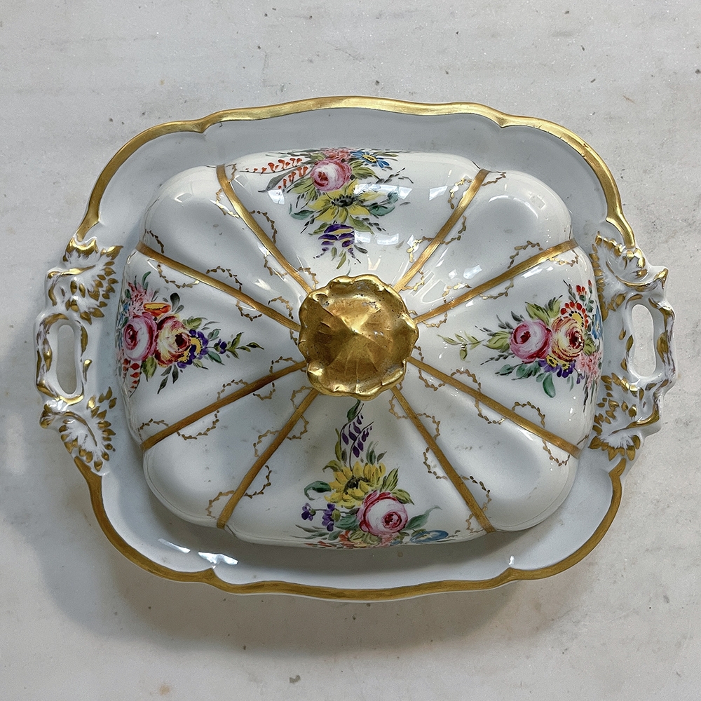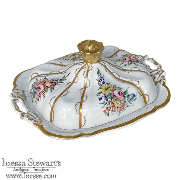 19th Century French Limoges Hand-Painted Covered Serving Dish