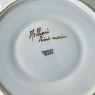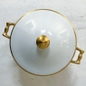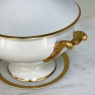 19th Century French Limoges Hand-Painted Covered Tureen with Platter is a stunning example of the exquisite porcelains that were produced during the period by master ceramicists. The stately neoclassical form of the tureen is enhanced by the painted detailing in gold, including the handles on both sides, the finial atop the lid, and bordering around the lid, tureen and platter. Such works are considered so decorative that they can be used as centerpieces by themselves, or for serving the chef's masterpiece in style! Hand-painted, it has been signed by the artist ~ A. Gillari.