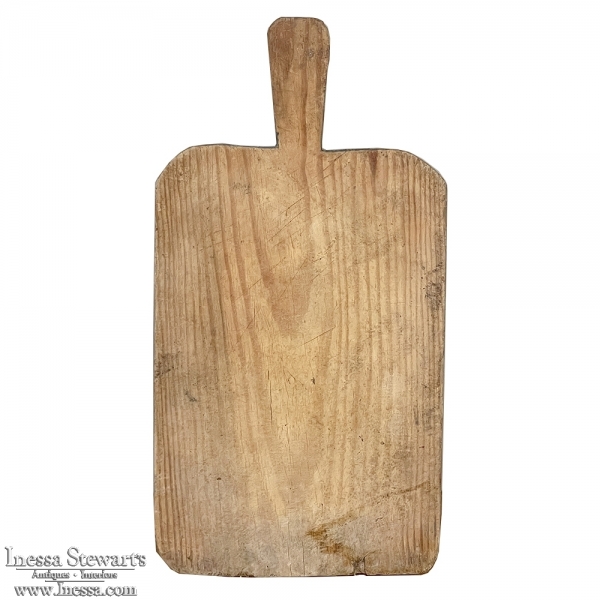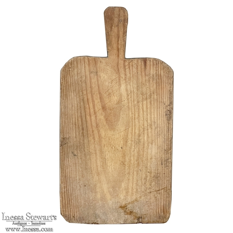 Antique Rustic Cutting Board is a charming example of human ingenuity. When kitchens had only wooden surfaces, it was smart to use such a contrivance to protect the cabinetry. Very portable, the board is also easier to clean and store to dry for its next use. Crafted out of local woods, this example is of old-growth yellow pine, the hardest of the species and therefore most desirable for such a use. Perfect for adding a rustic culinary accent to your decor!