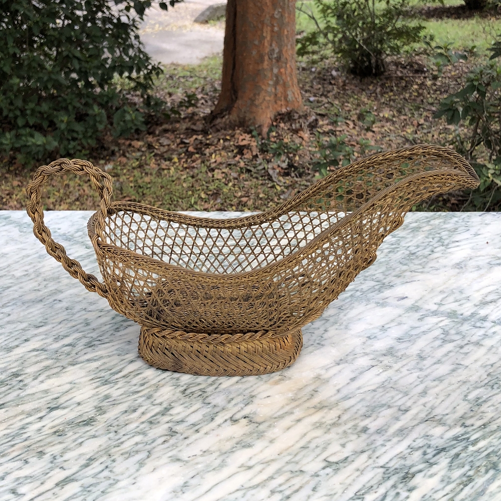 Antique Brass Wine Serving Basket