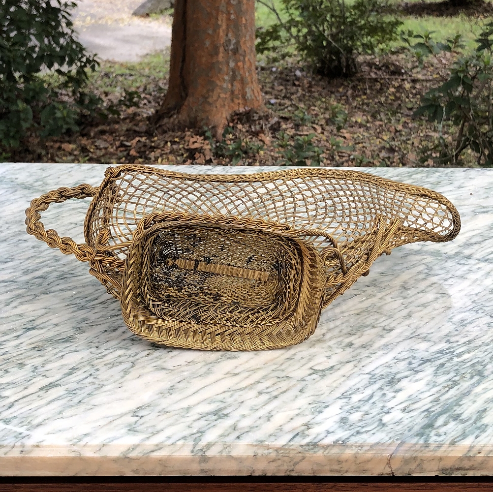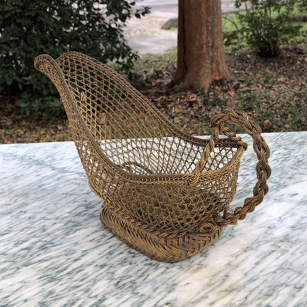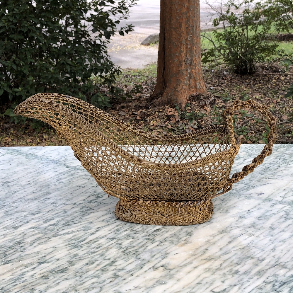 • Antique Brass Wine Serving Basket Pin This