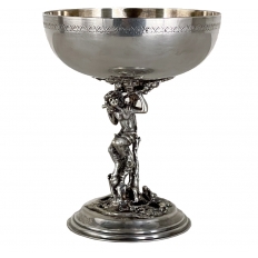 Bacchus Silverplate Toasting Goblet by AlpaDur depicts a young God of Mirth with goat's legs forming the stem, created with wonderful detail with fully laden grapevines. Perfect for extra-special occasions! Made in Spain.
