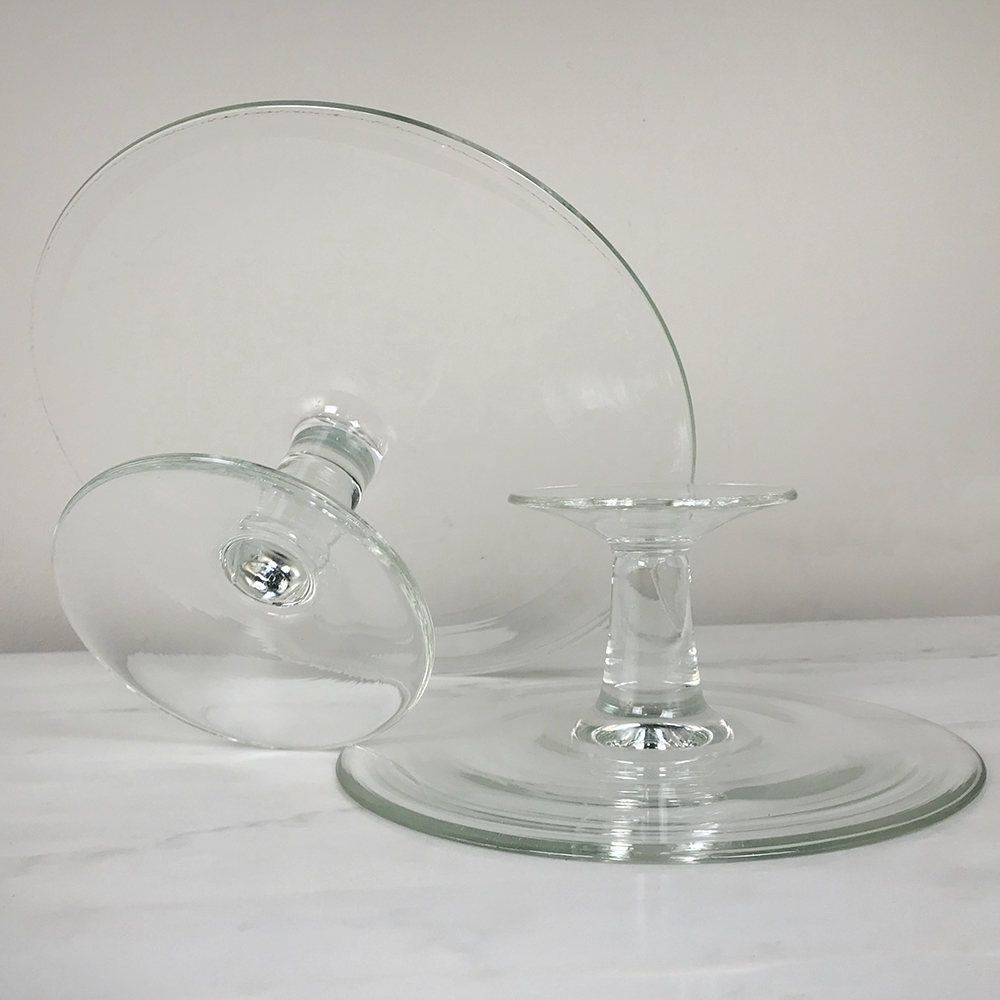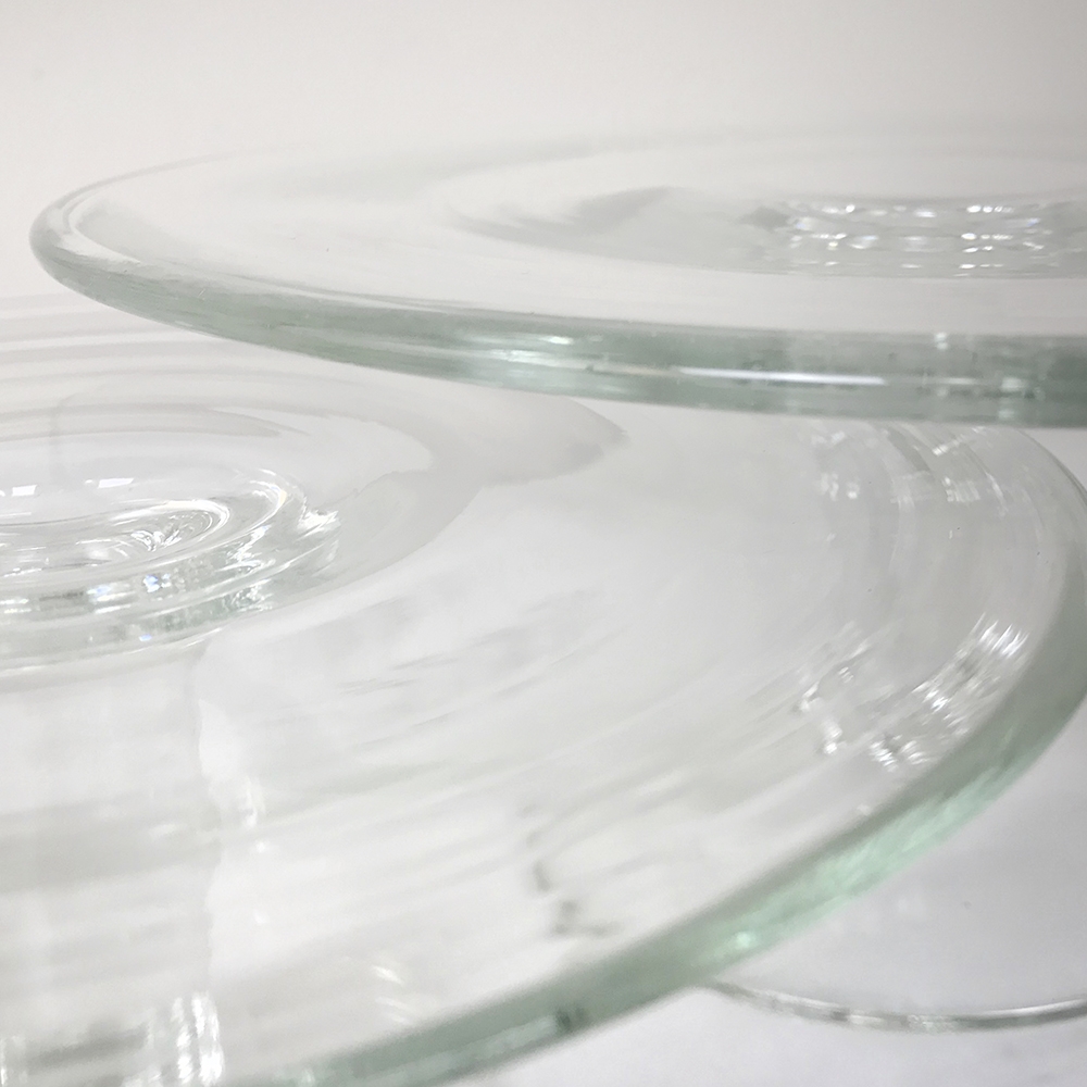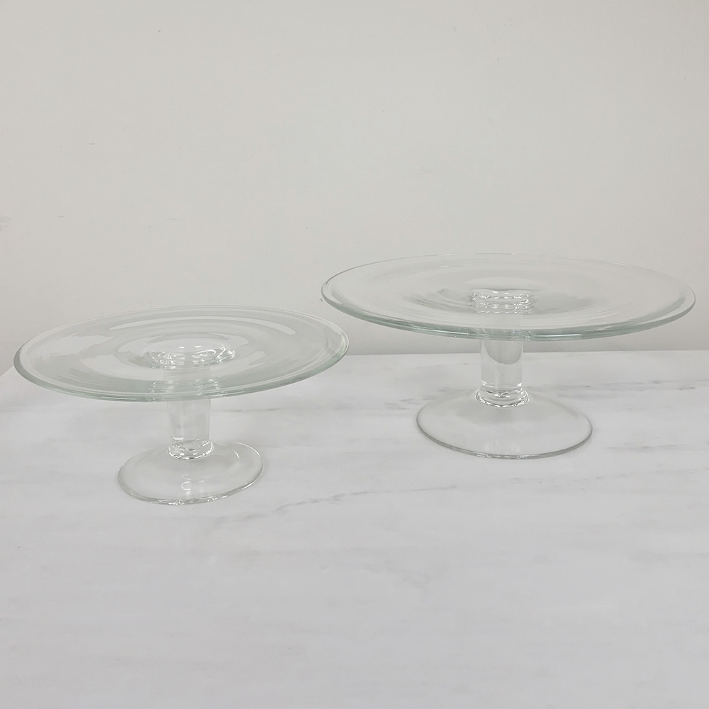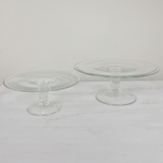 Pair Antique Glass Cake Stands were hand-blown by obvious masters in their trade.