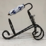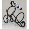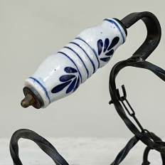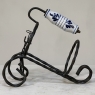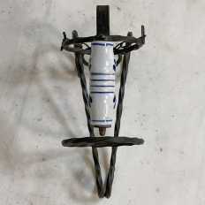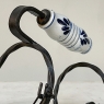 Vintage Wrought Iron Wine Cradle with Blue & White Porcelain Handle