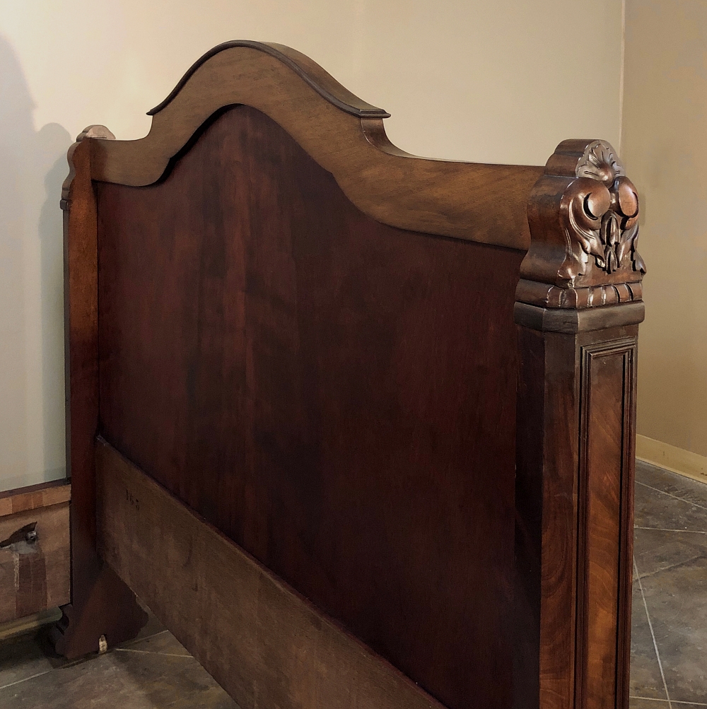 Sale19th Century French Napoleon III Mahogany Day Bed is a masterful study in classical architecture melded with timeless French craftsmanship and an understated elegance that will transform your room! Subtly carved end post tops complement the tailored lines of the head and foot boards. Ideal to use as a stand-alone bed, or as a daybed if you so desire.