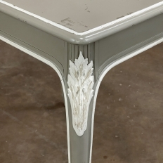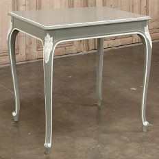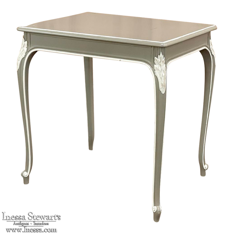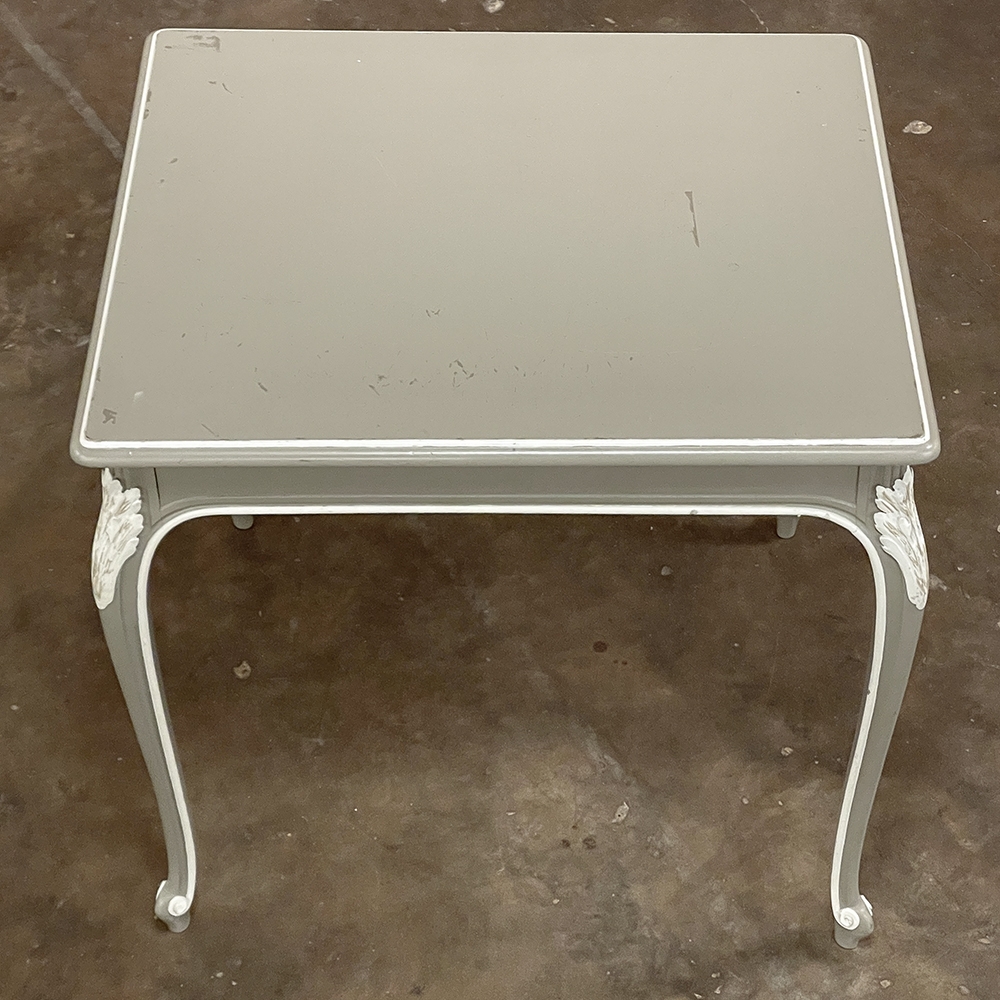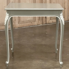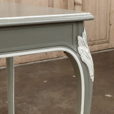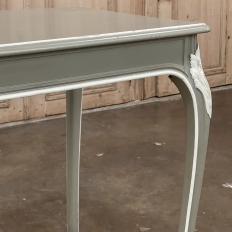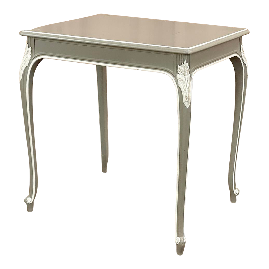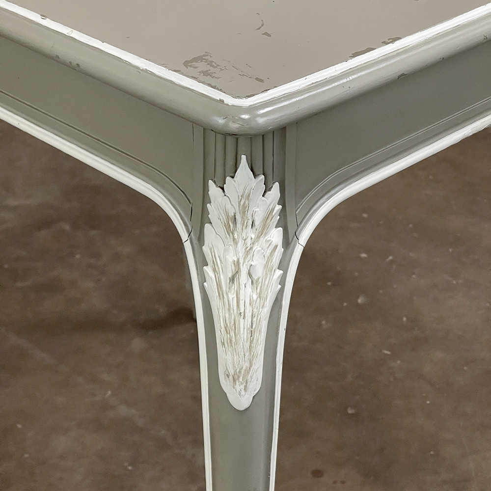 SaleAntique French Louis XV Painted Occasional Table represents the essence of tailored elegance, with a subtle architectural design that includes an rectangular top supported by a tailored apron all around, and four very subtly scrolled legs, each of which is accentuated by carved embellishments in the neoclassic theme augmenting the otherwise Louis XV overall effect. The carvings and molding are highlighted in off white to contrast with the taupe color of the rest of the piece, for a pleasing effect, and the size is such that it can be used just about anywhere, for a wide variety of purposes.