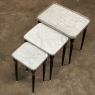 Antique French Louis XVI Mahogany Nesting Tables with Carrara Marble Tops