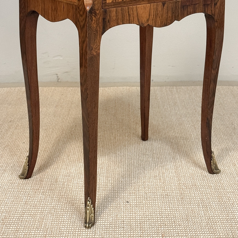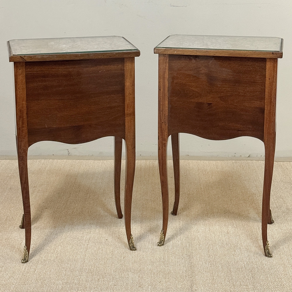Pair of French Marble Top Marquetry Side Tables ~ Nightstands