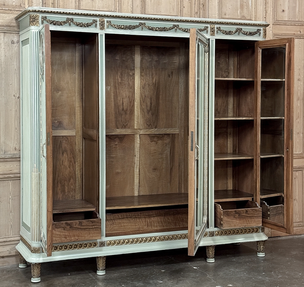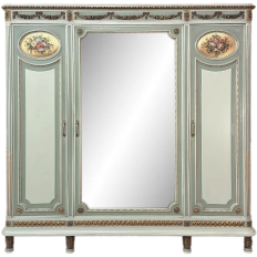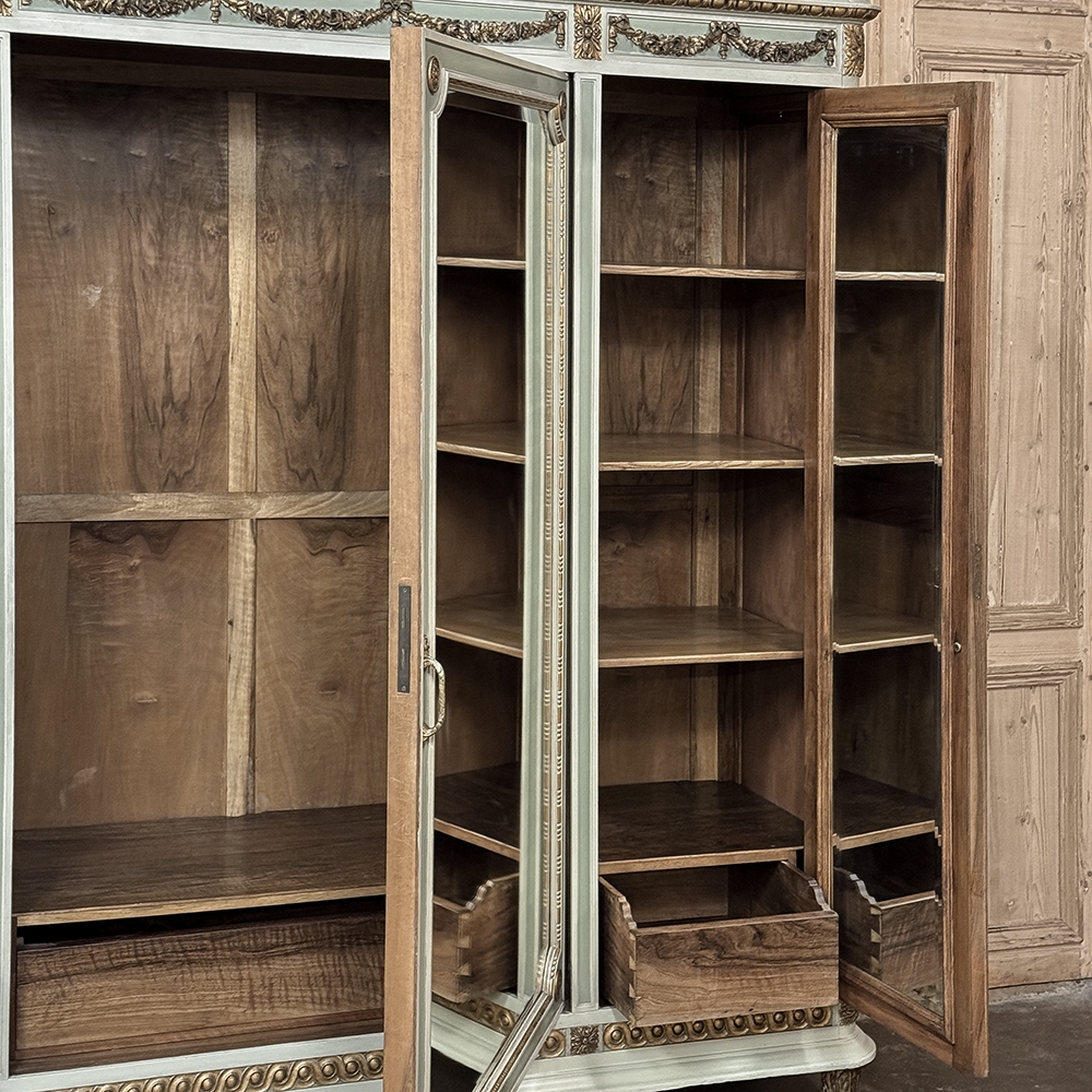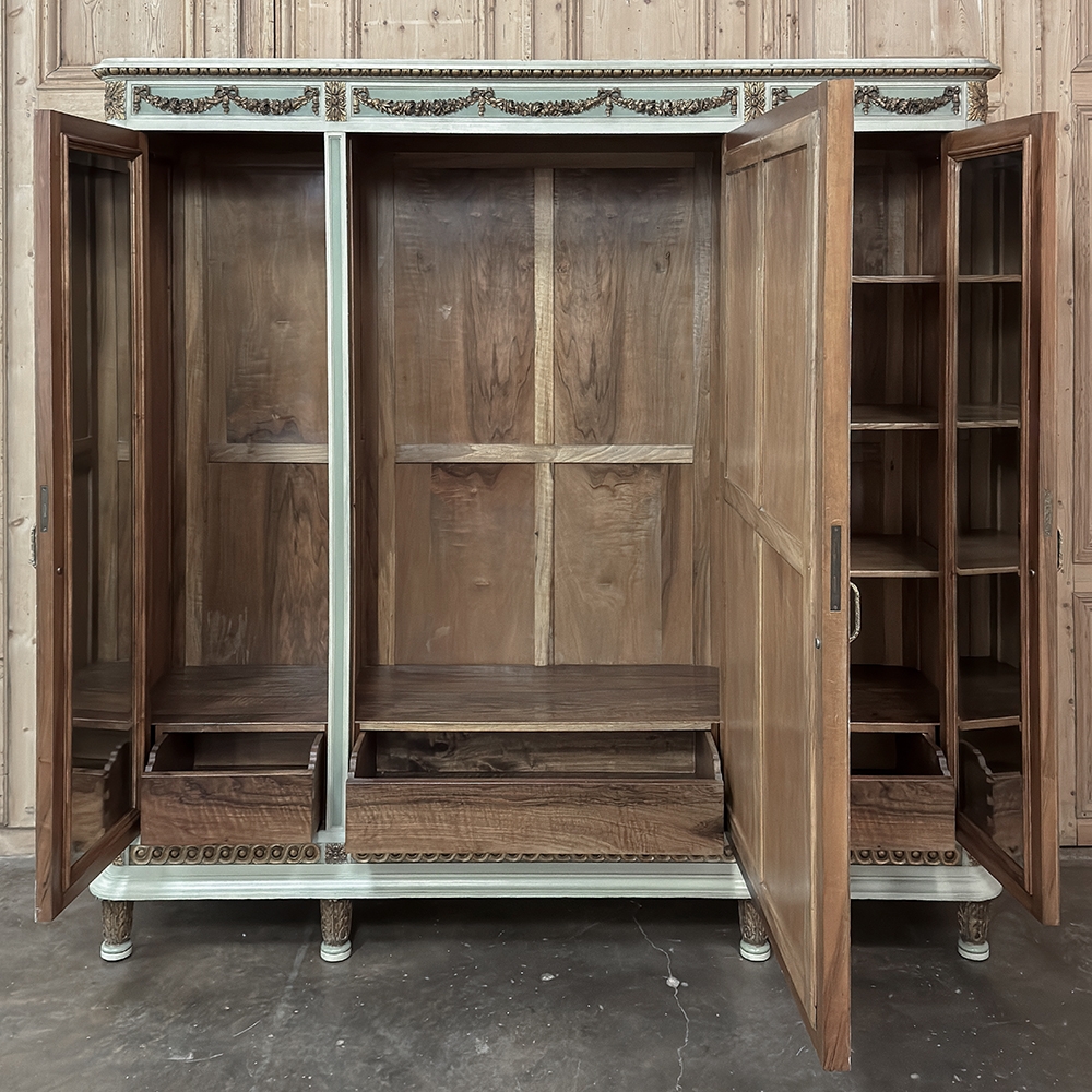 Antique Italian Neoclassical Painted Triple Armoire