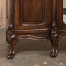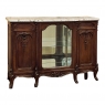 19th Century French Louis XIV Marble Top Walnut Display Buffet for those who wish to possess an exquisitely rendered, beautifully styled focal centerpiece to a room that performs multiple critical functions! Styled in the manner of the Sun King, its timeless lines were rendered in hand-select sumptuous French walnut, and carved to perfection with shell, acanthus foliate, bellflower and scrollwork designs. Consisting of three sections, it features discreet storage on the left and right with tailored drawers accessed with a key as a pull positioned over spacious side cabinets lavished with the aforementioned detailing, that open to reveal surprising storage. The center section which steps front slightly via cornerposts set at 45 degrees and carved with shell, floral and foliate motifs, is fitted with a single door that is fully glazed with beveled glass, with an interior fitted with a glass shelf and mirrored floor, sides and back to showcase particular items of interest, family heirlooms or memorabilia. The apron across the facade is lavished with shell and foliates, scrolled legs set at 45 degrees and carved with paw feet. An exquisitely veined marble top has been contoured and beveled to follow the step-front casework below, providing the ultimate in carefree elegance for display or serving. A fine example of French expression rendered by German immigrants who set up shop in Paris and continued generations of furniture crafting excellence!