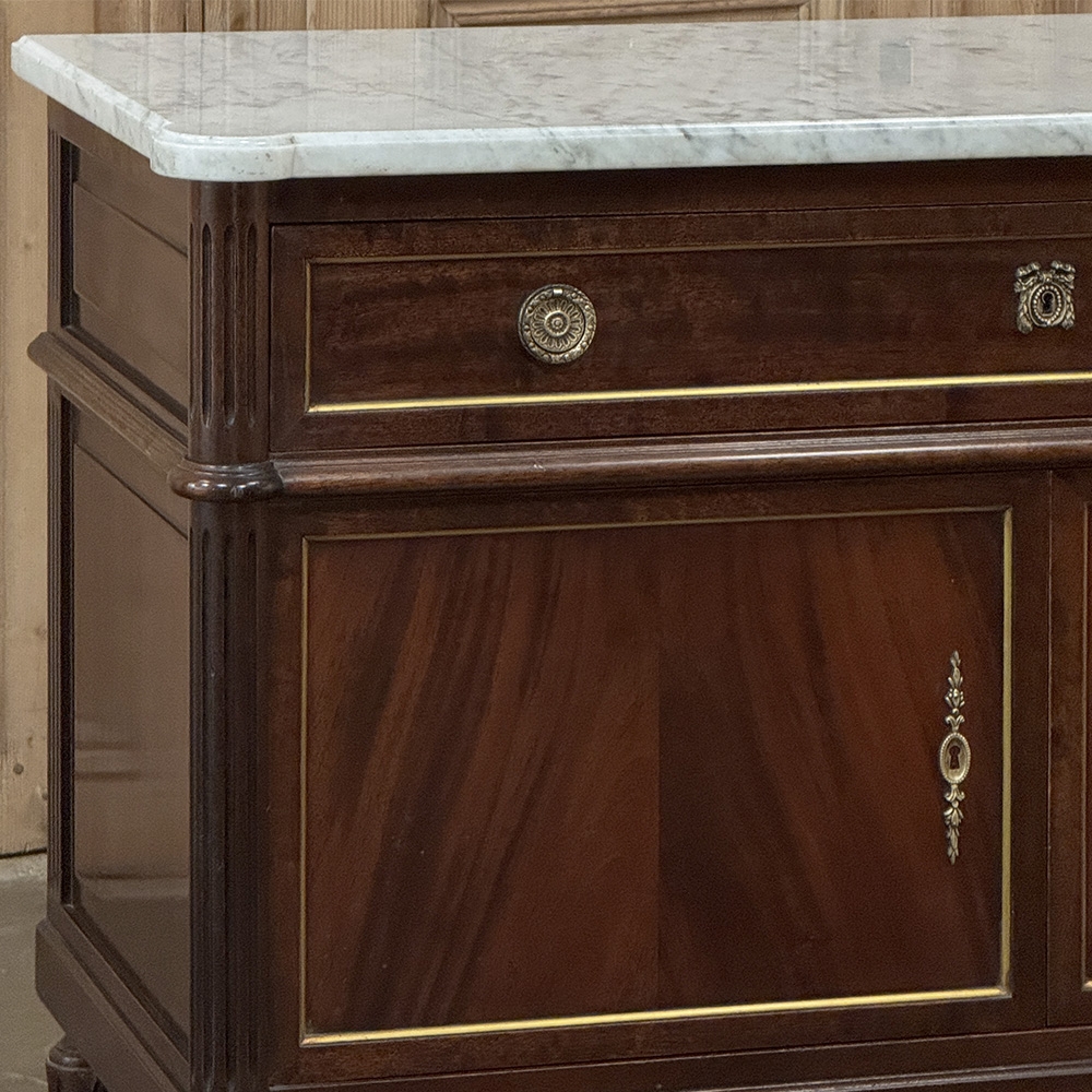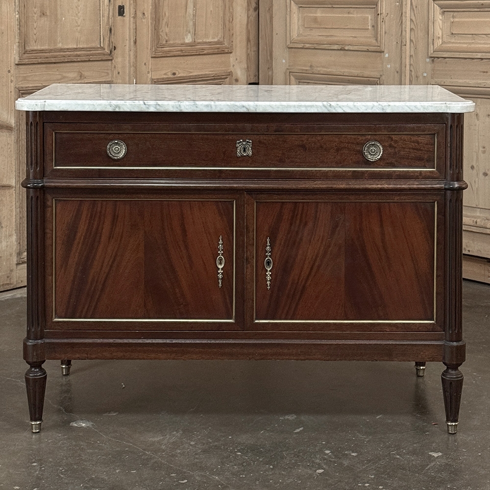 19th Century French Louis XVI Mahogany Buffet ~ Credenza with Carrara Marble