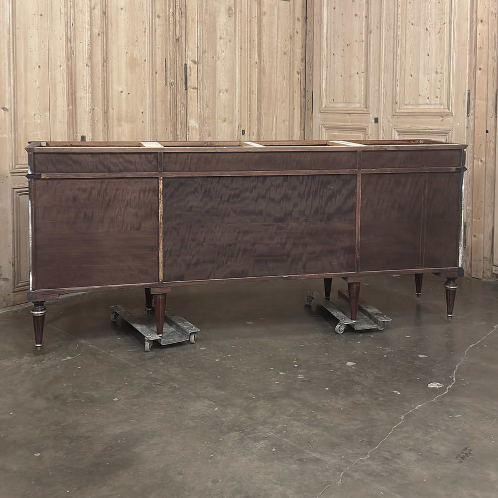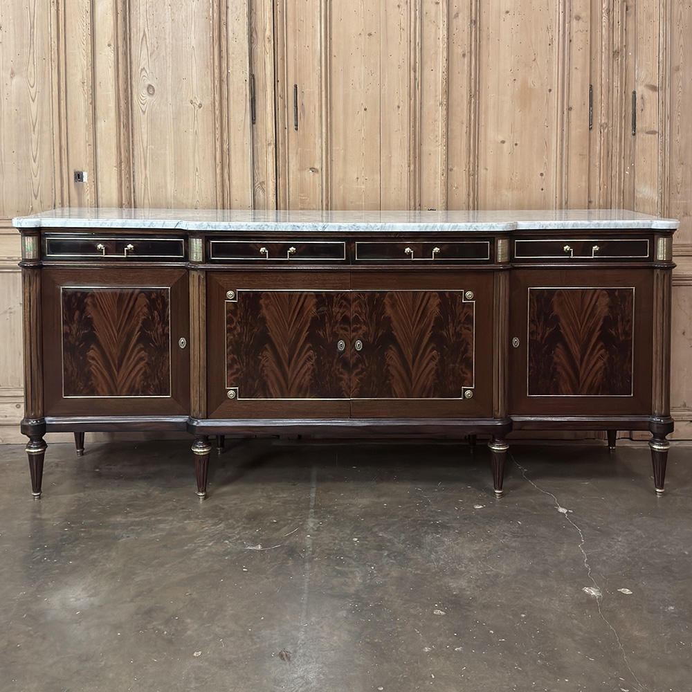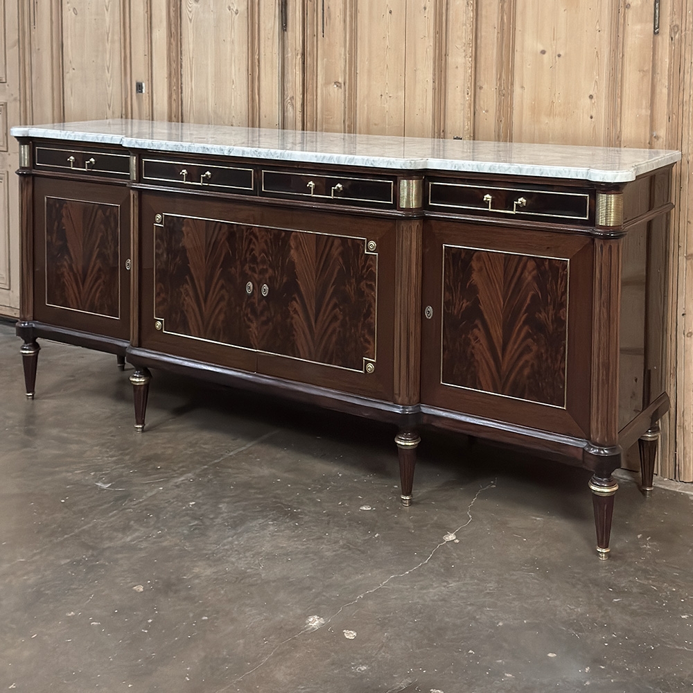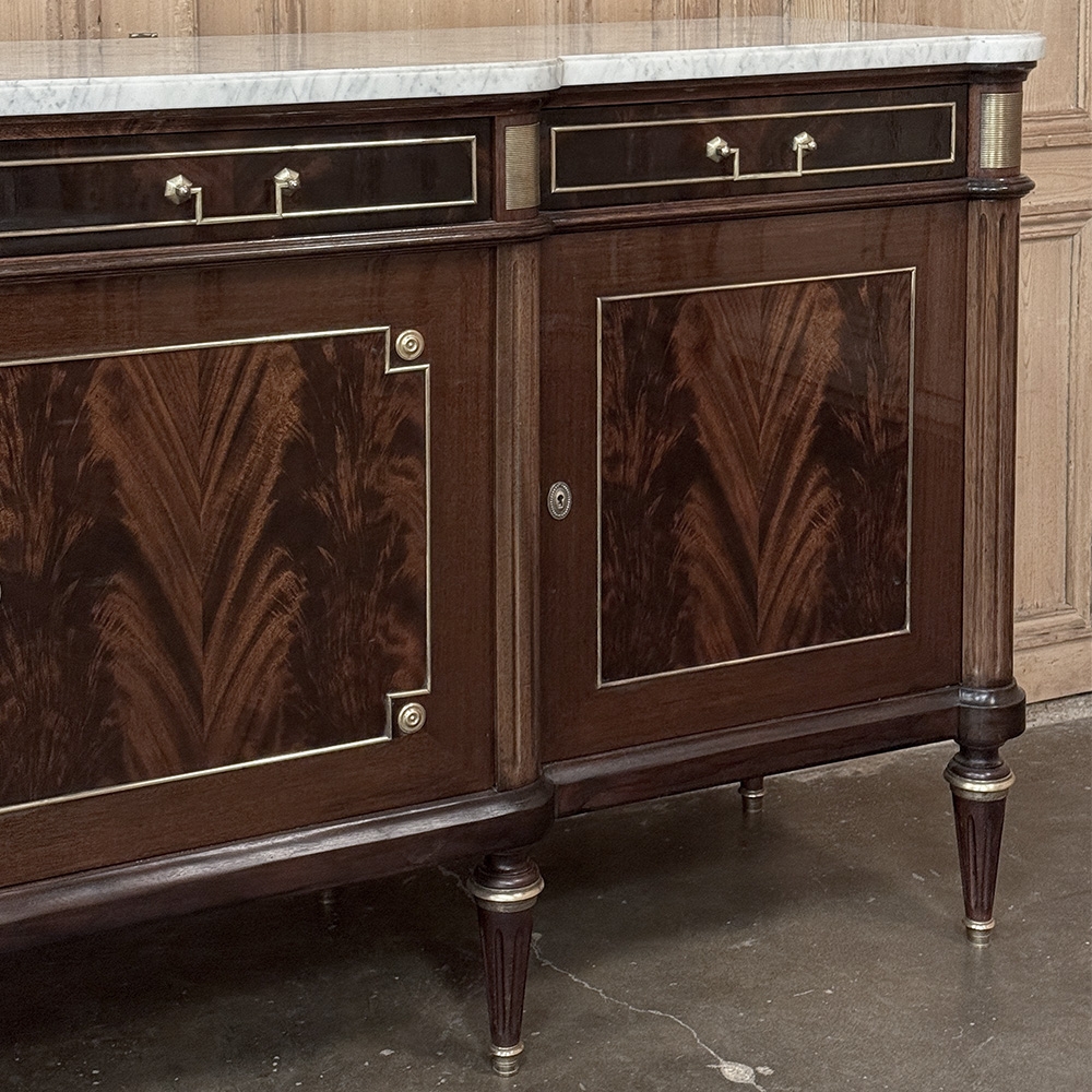 Antique Directoire Style French Mahogany Buffet with Carrara Marble Top