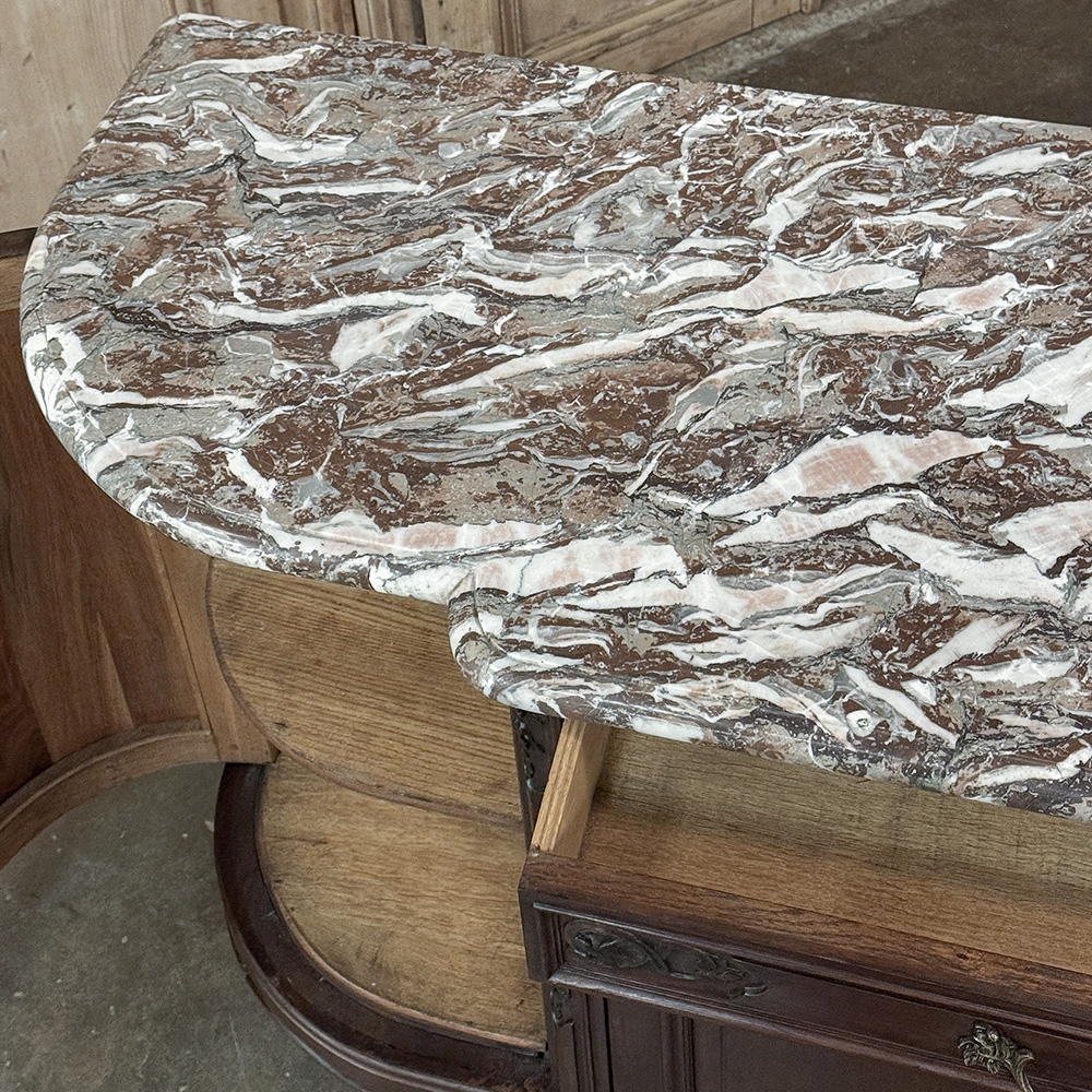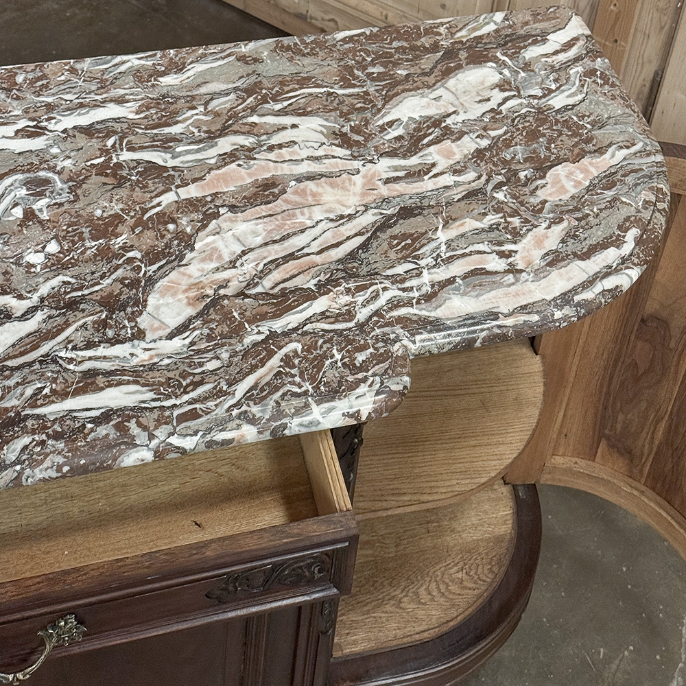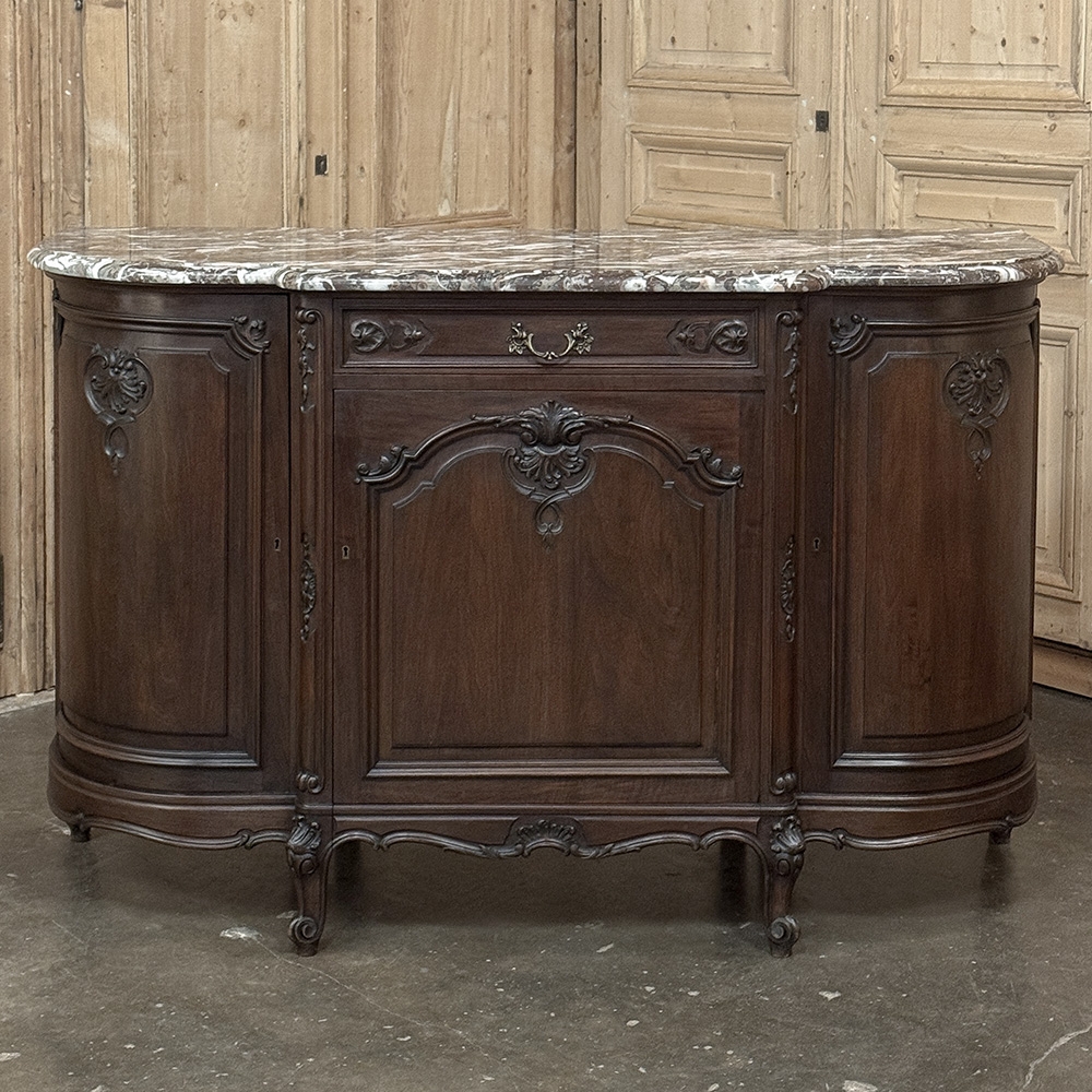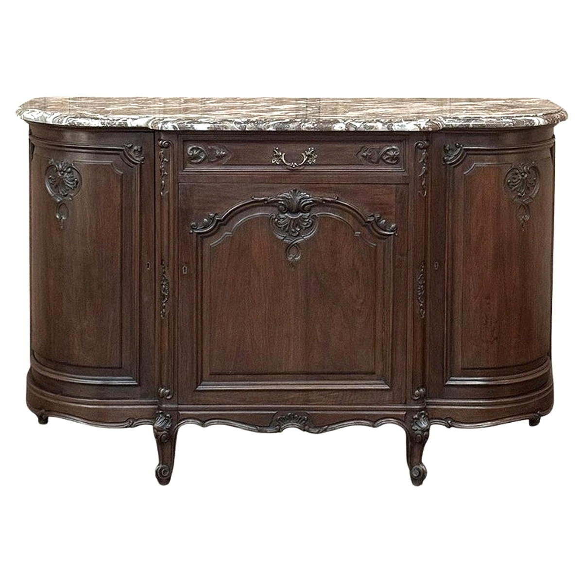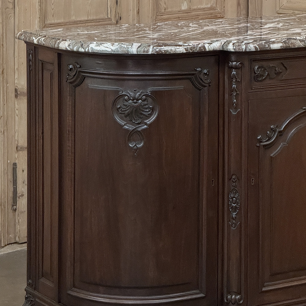 Antique French Louis XIV Marble Top Walnut Buffet with Rounded Sides