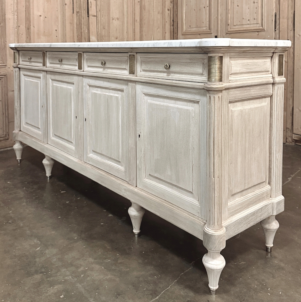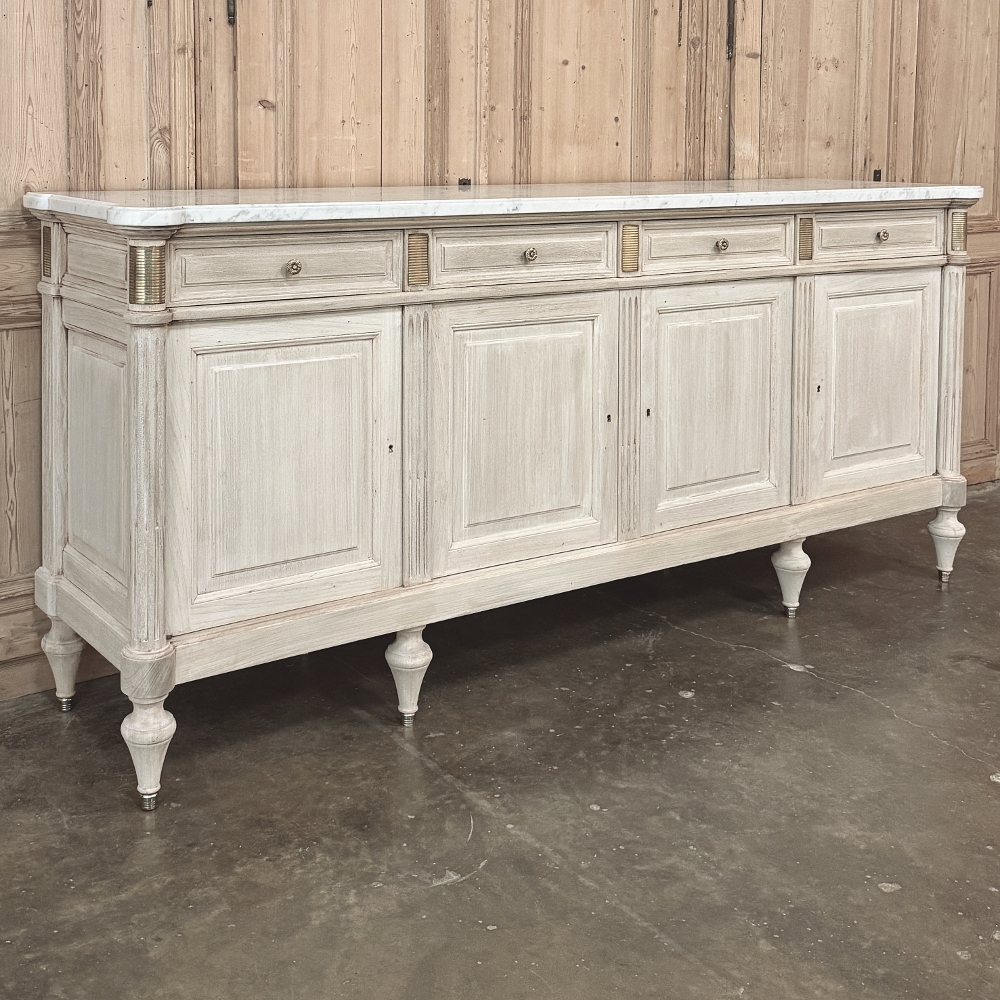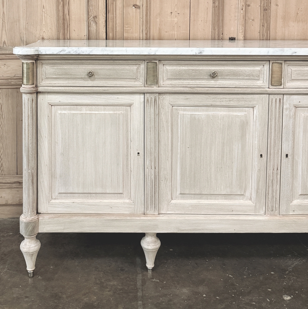 Antique French Louis XVI Bleached Mahogany Buffet with Carrara Marble