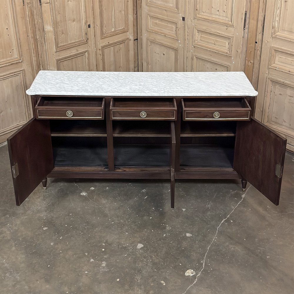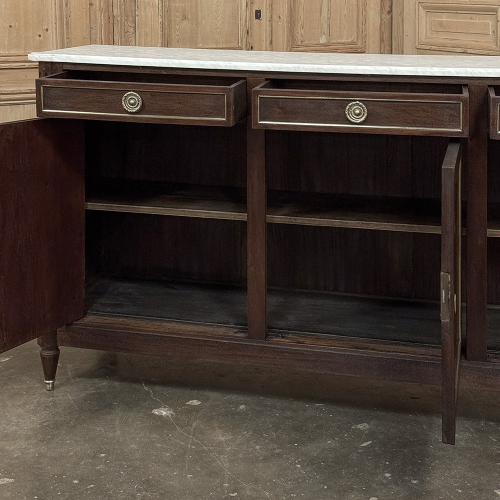 Antique French Louis XVI Mahogany Buffet ~ Credenza with Carrara Marble