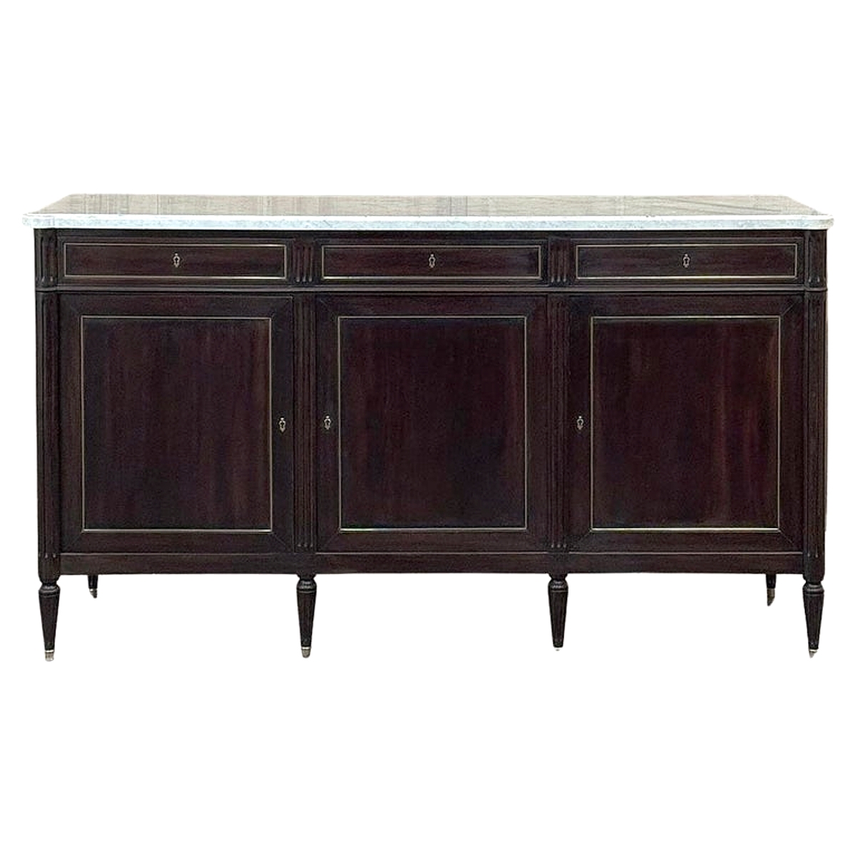 Antique French Louis XVI Mahogany Buffet with Carrara Marble