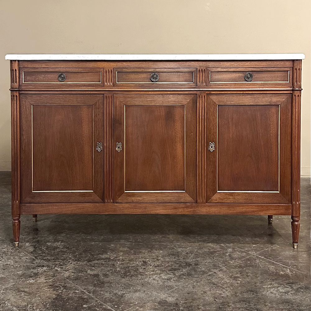 Antique French Louis XVI Mahogany Buffet with Carrara Marble
