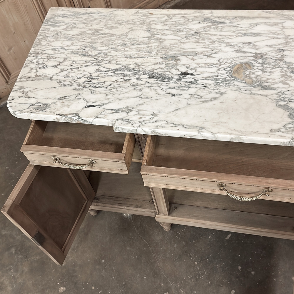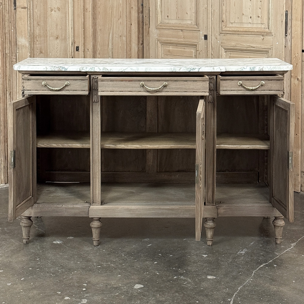 Antique French Louis XVI Marble Top Buffet in Stripped Walnut