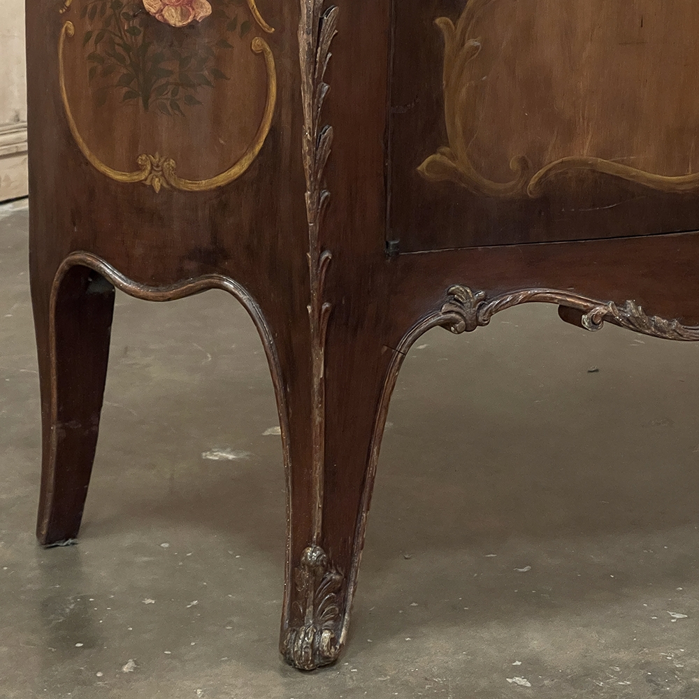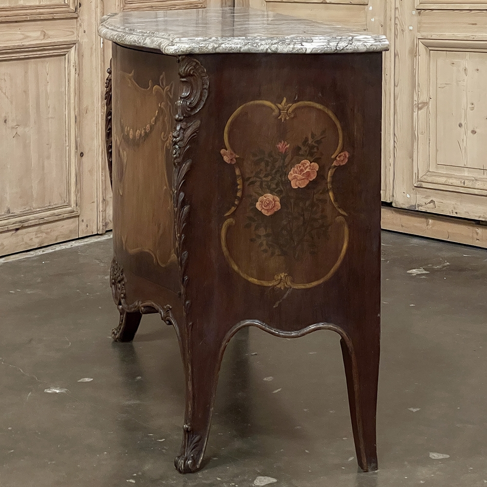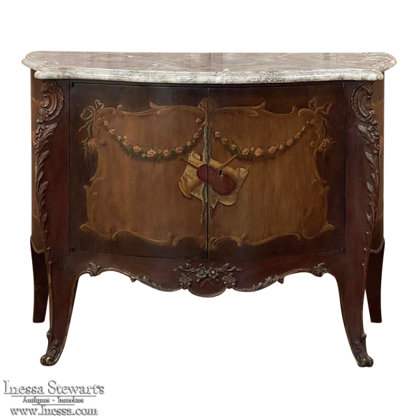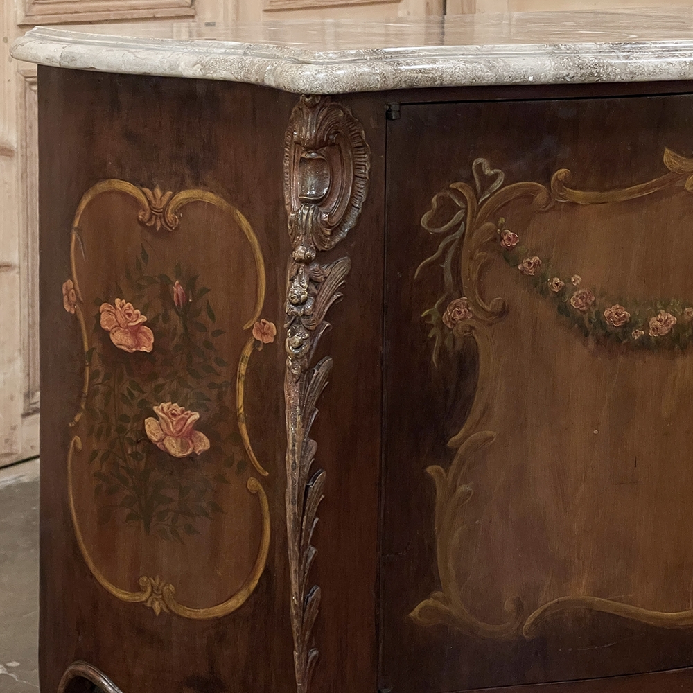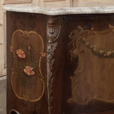 Antique Italian Hand-Painted Marble Top Bombe Commode ~ Cabinet