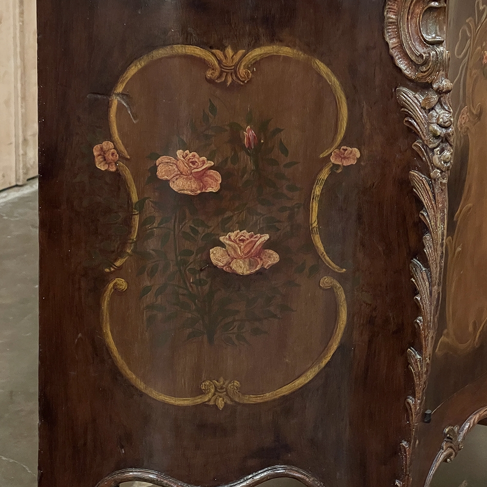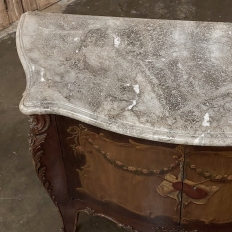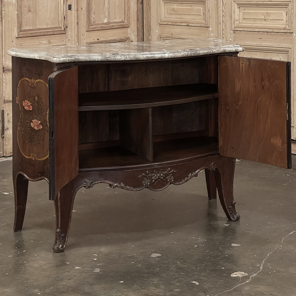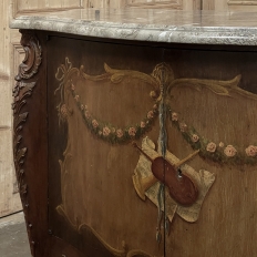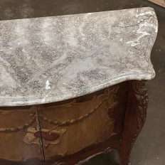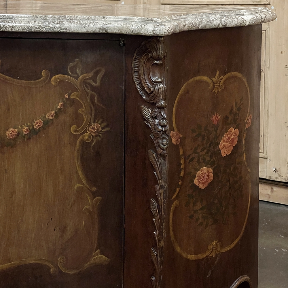 Antique Italian Hand-Painted Marble Top Bombe Commode ~ Cabinet