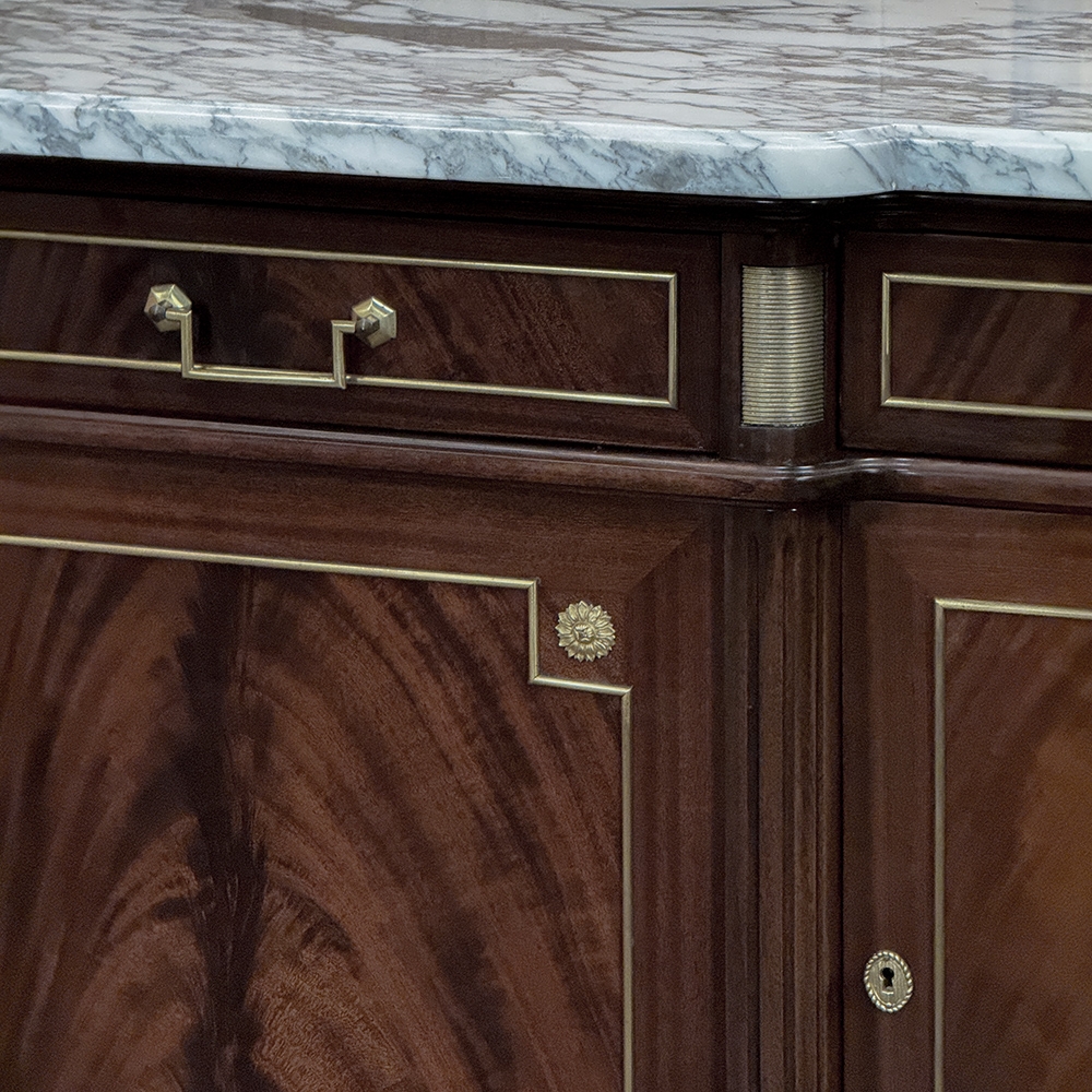 Grand Antique French Directoire Style Marble Top Mahogany Buffet