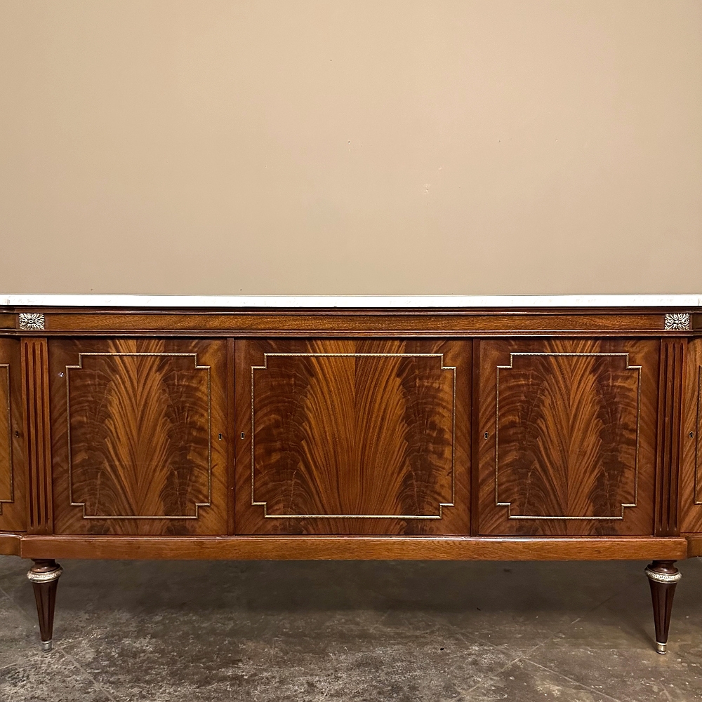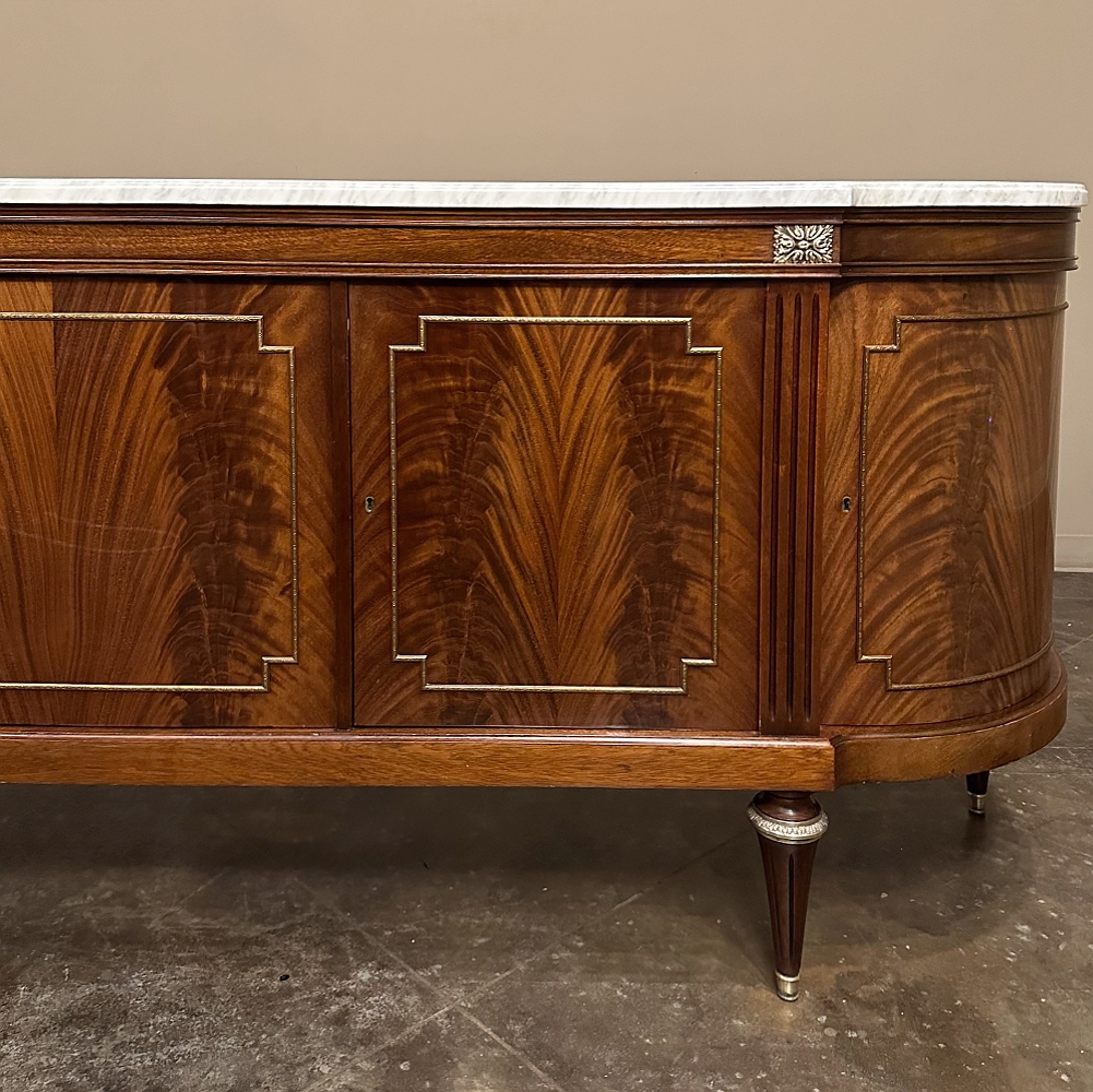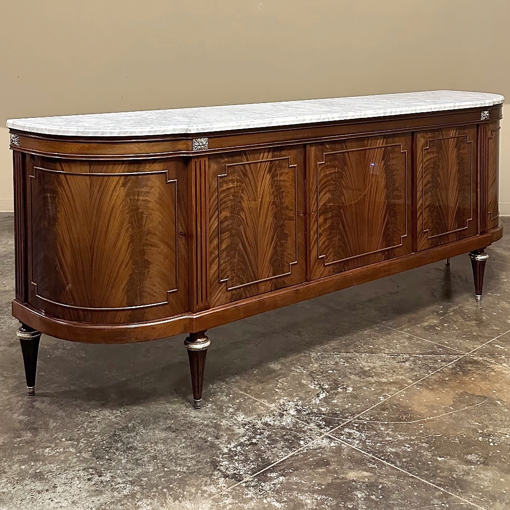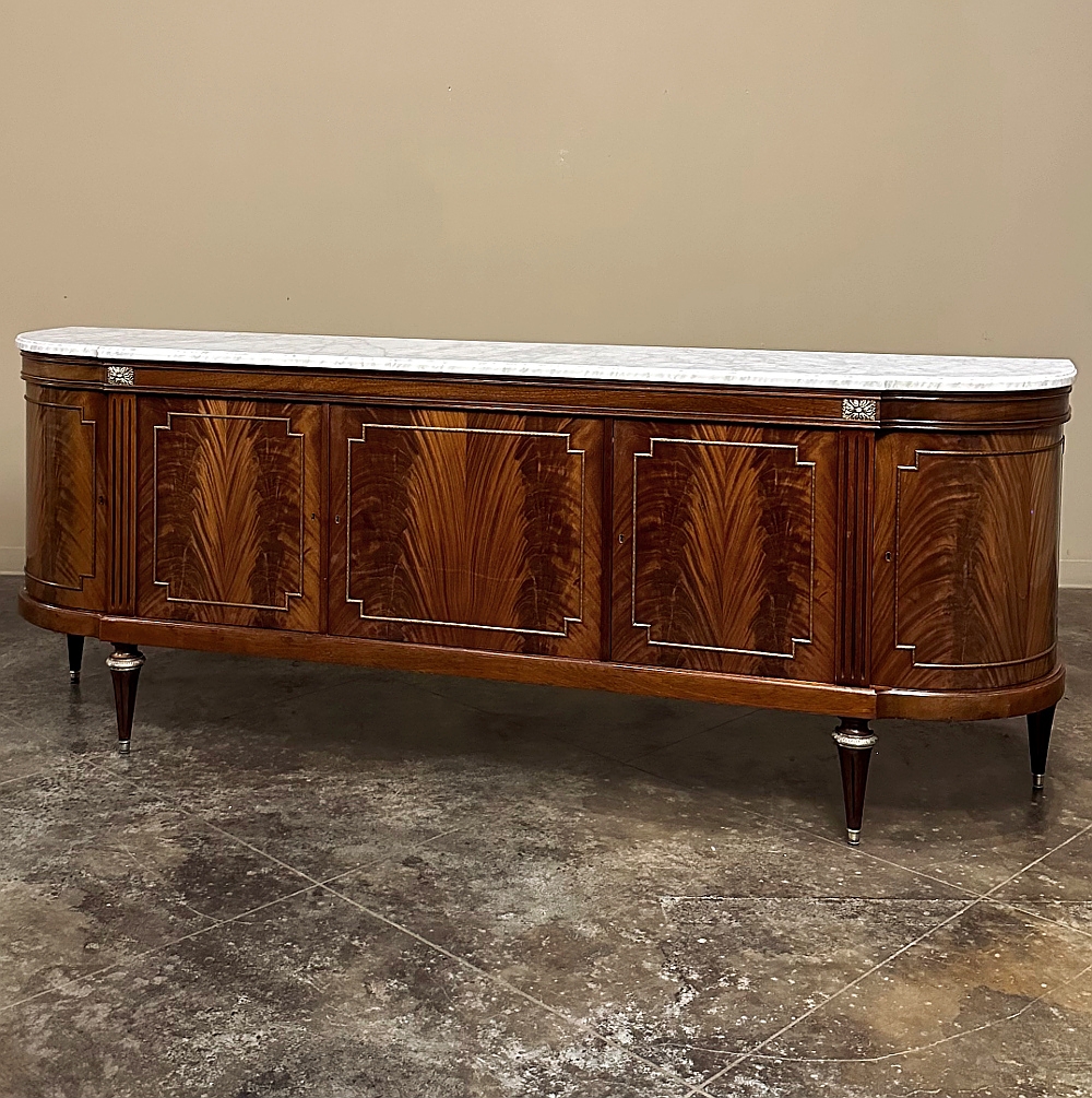 Grand French Louis XVI Flame Mahogany Buffet with Carrara Marble