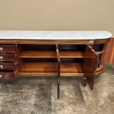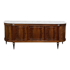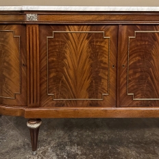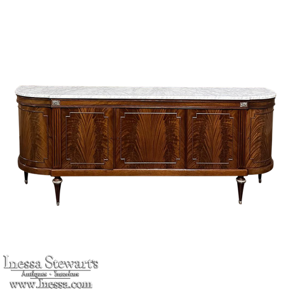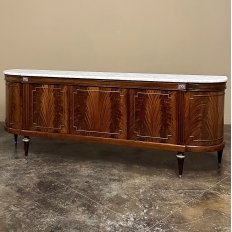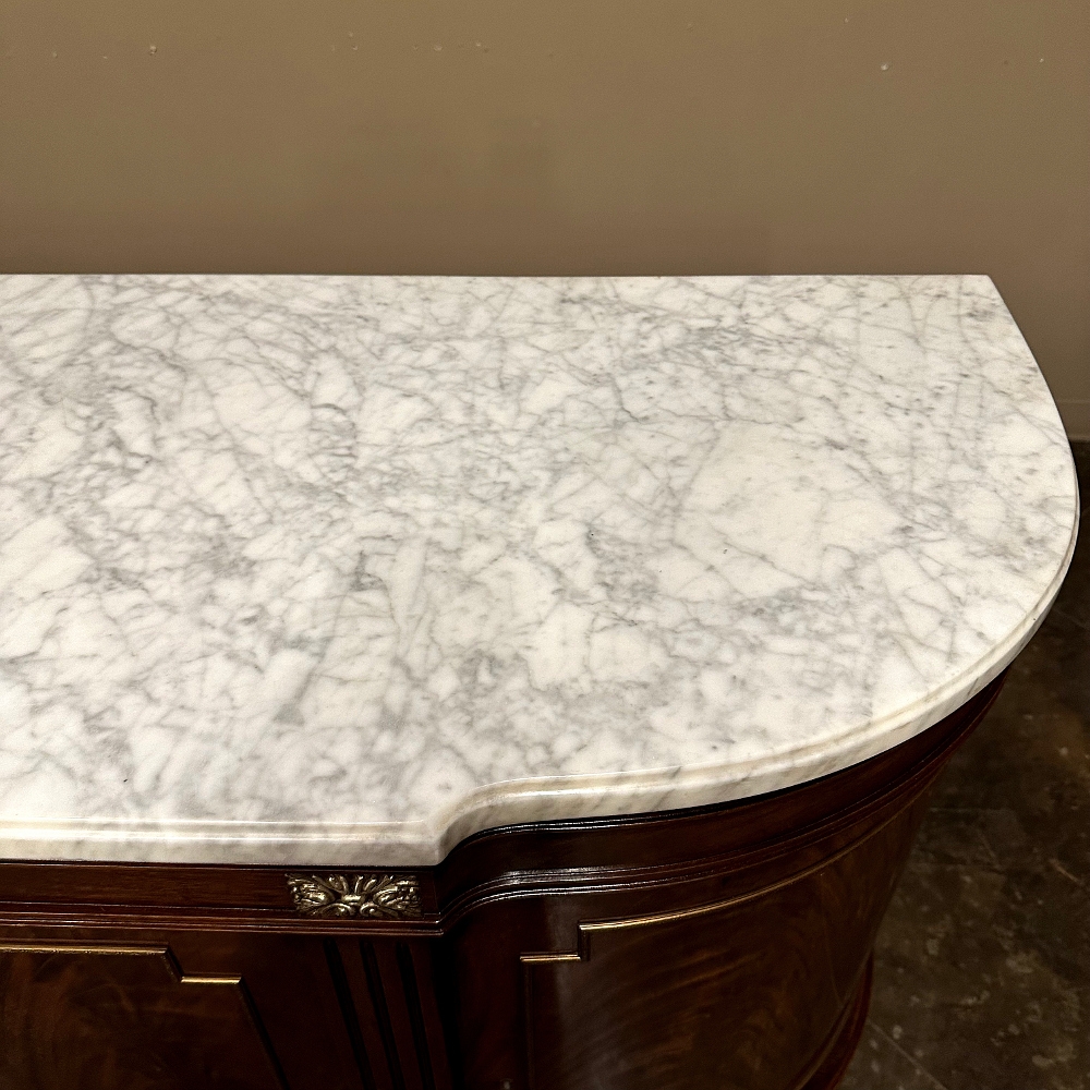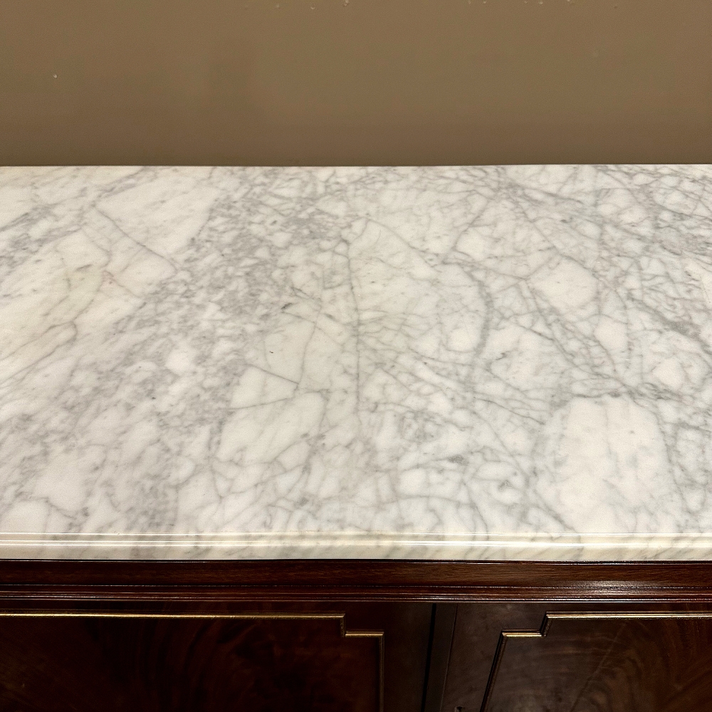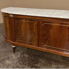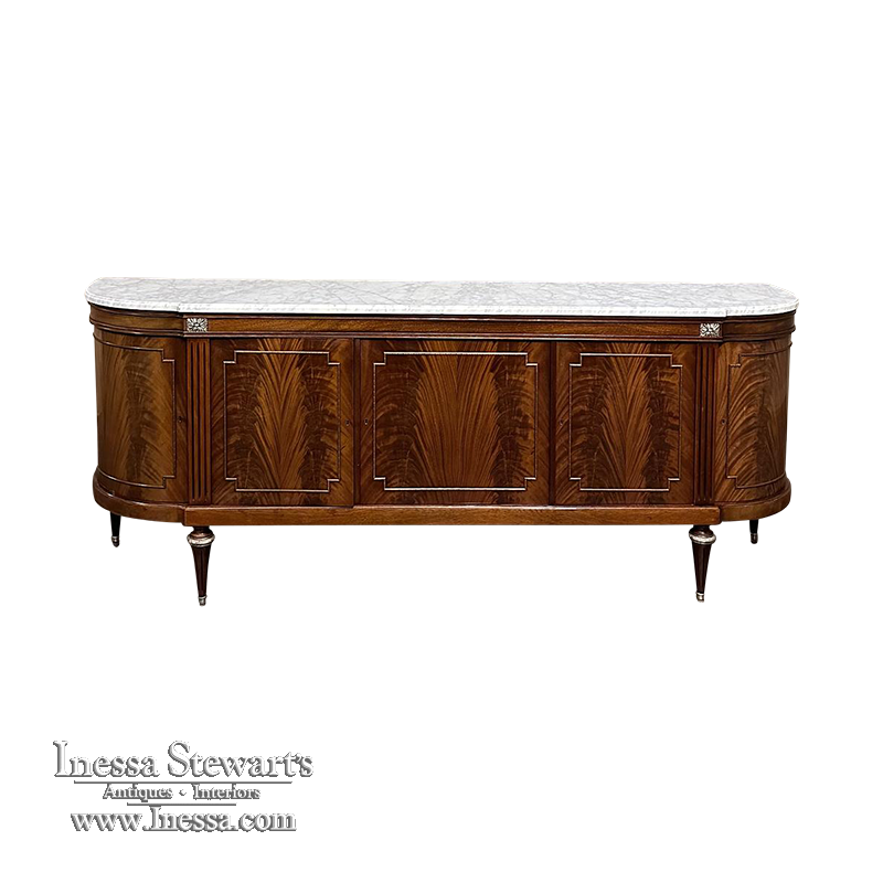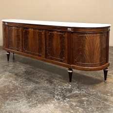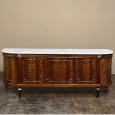 Grand French Louis XVI Flame Mahogany Buffet with Carrara Marble