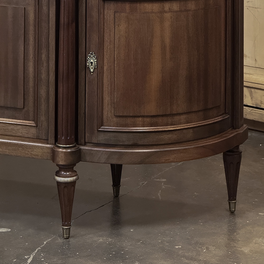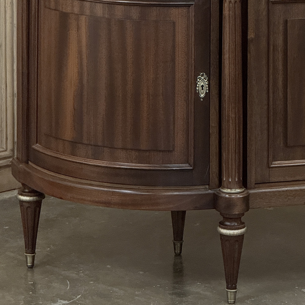 Grand French Louis XVI Mahogany Round-Sided Buffet with Carrara Marble