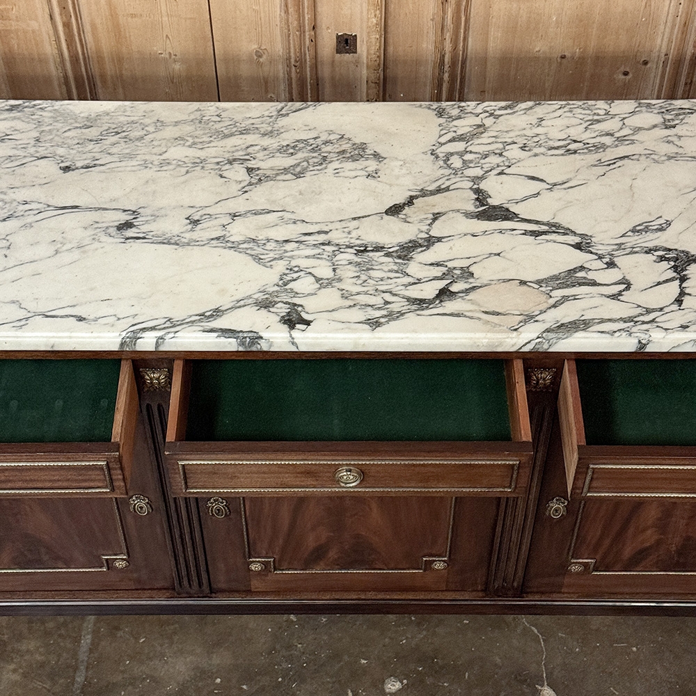 Grand Louis XVI Style Flame Mahogany Buffet with Marble Top