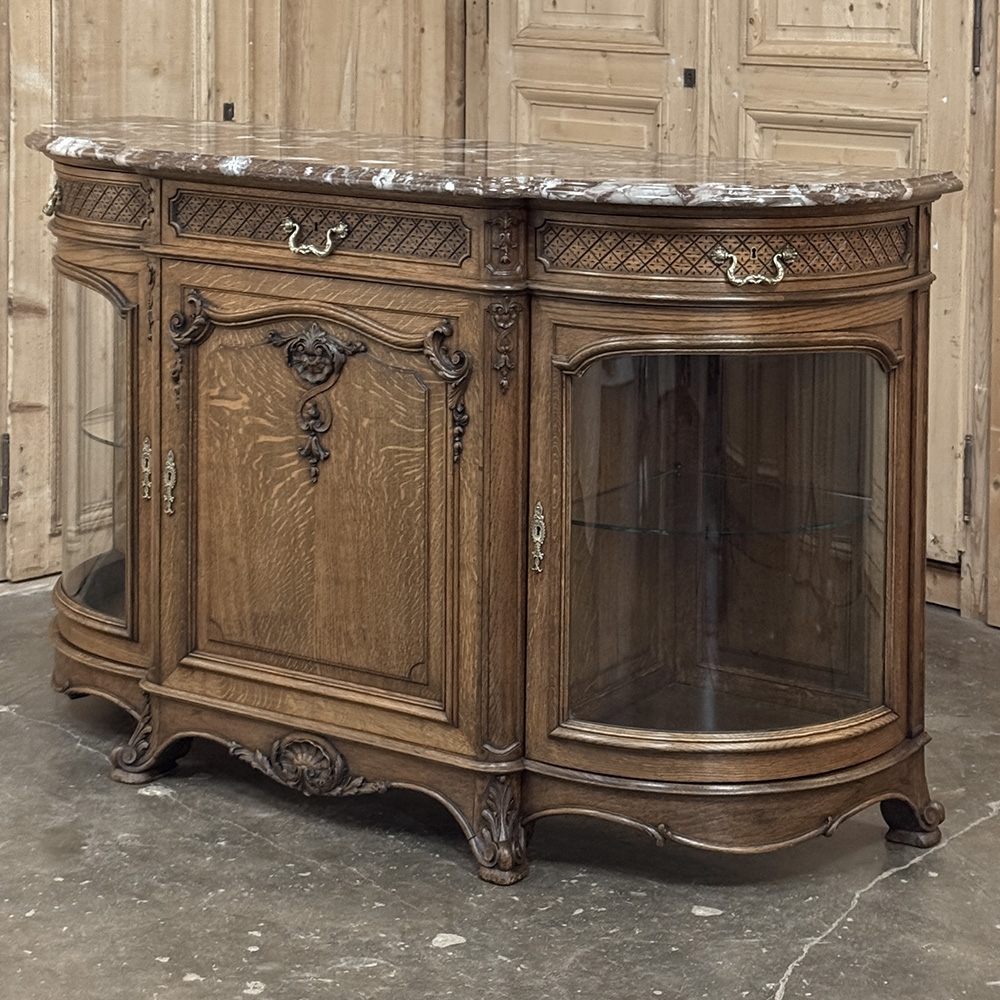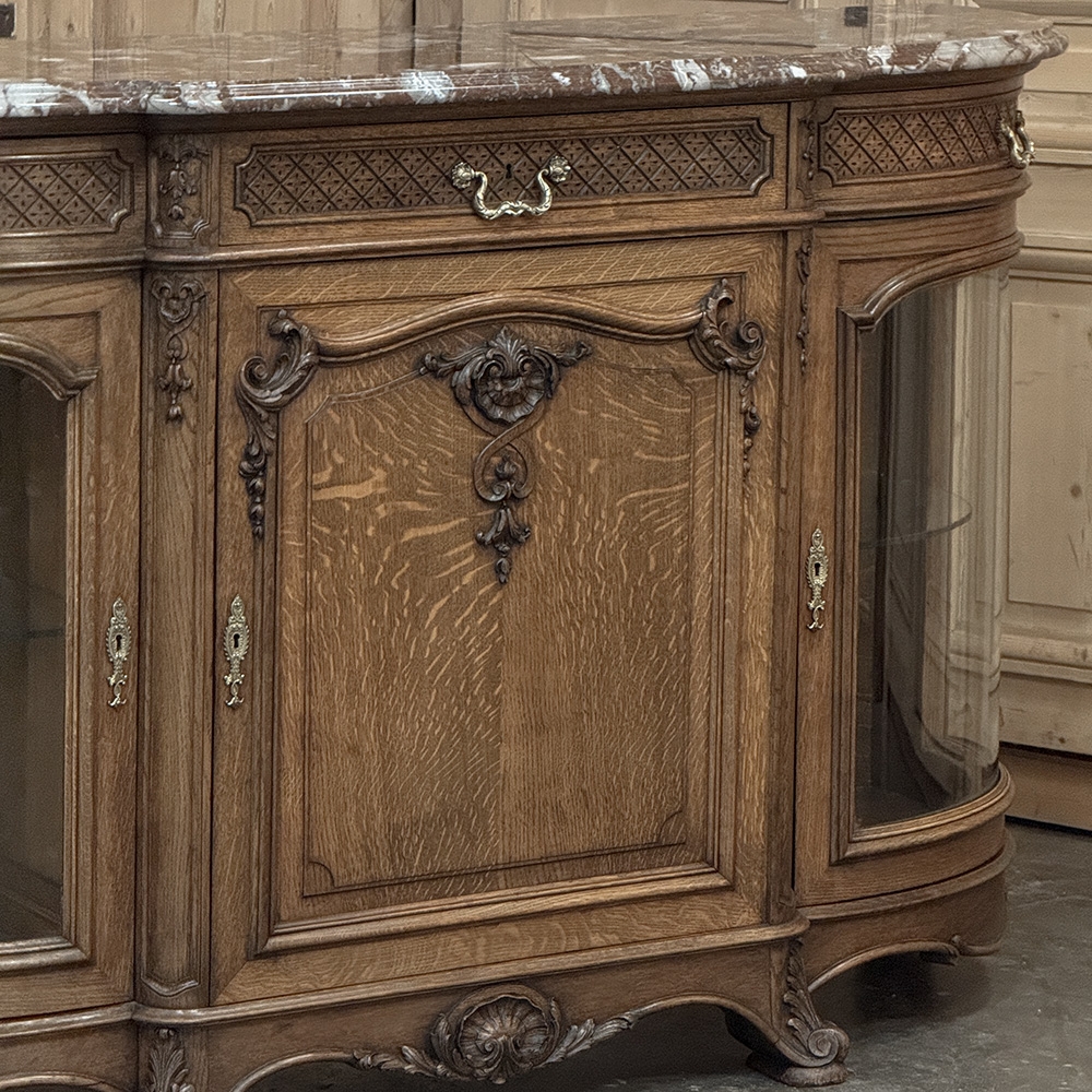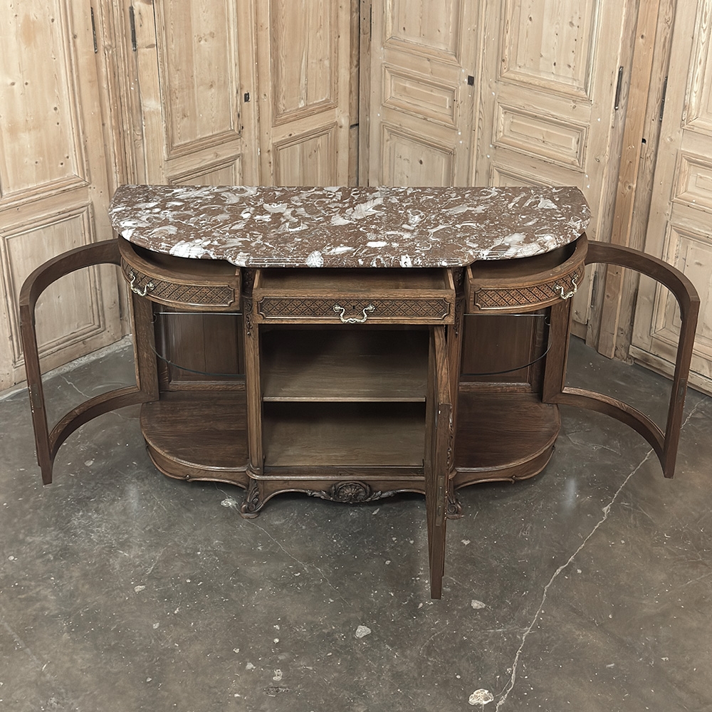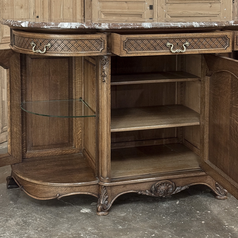 Late 19th Century Liégeoise Régence Style Oak Display Buffet with Rouge Griotte Breccia Marble Top