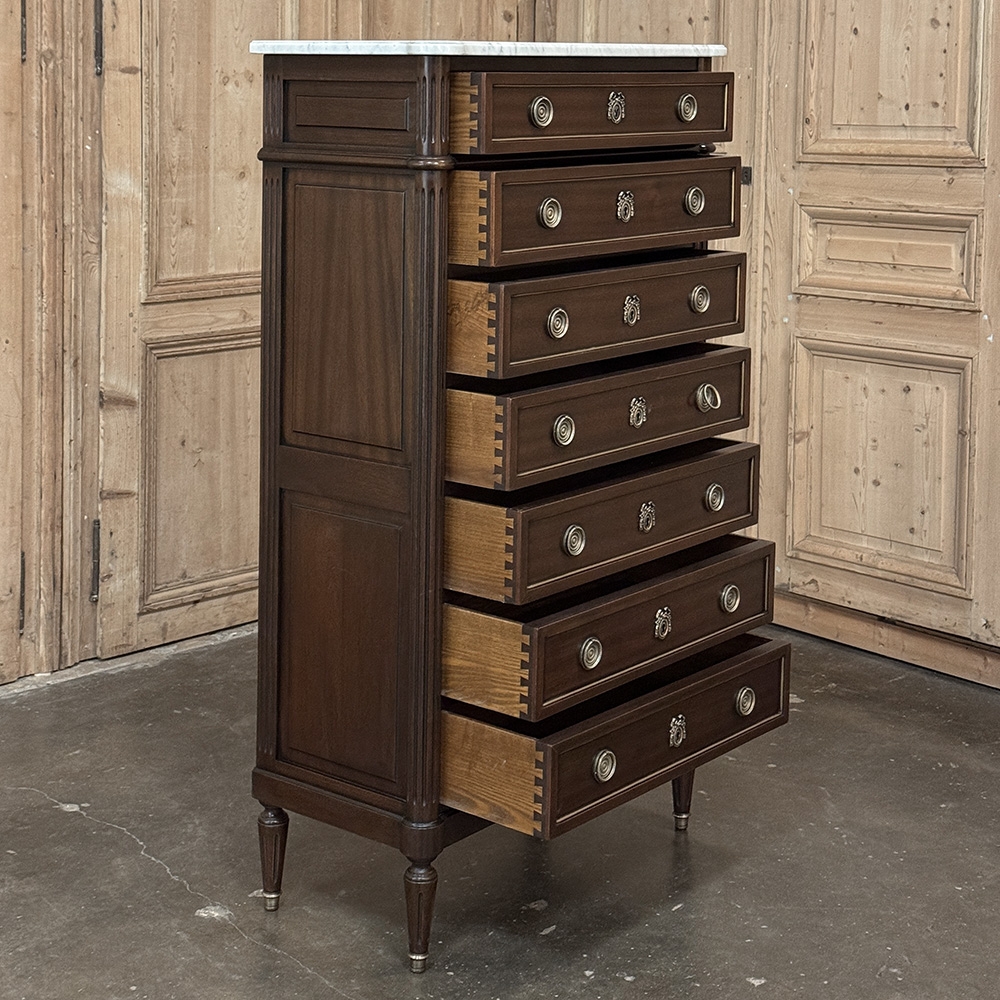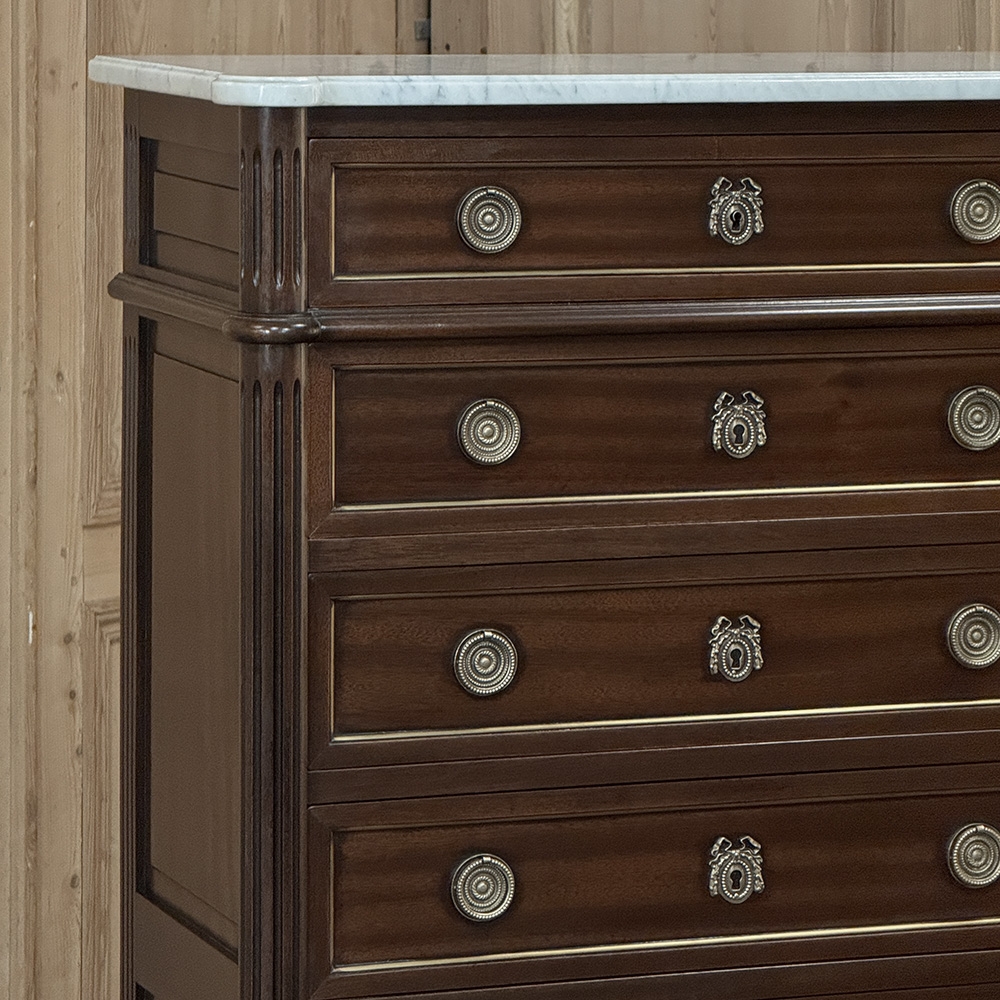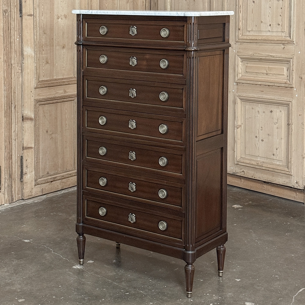 19th Century Louis XVI Mahogany Carrara Marble Top Semainier ~ Tall Chest of Drawers