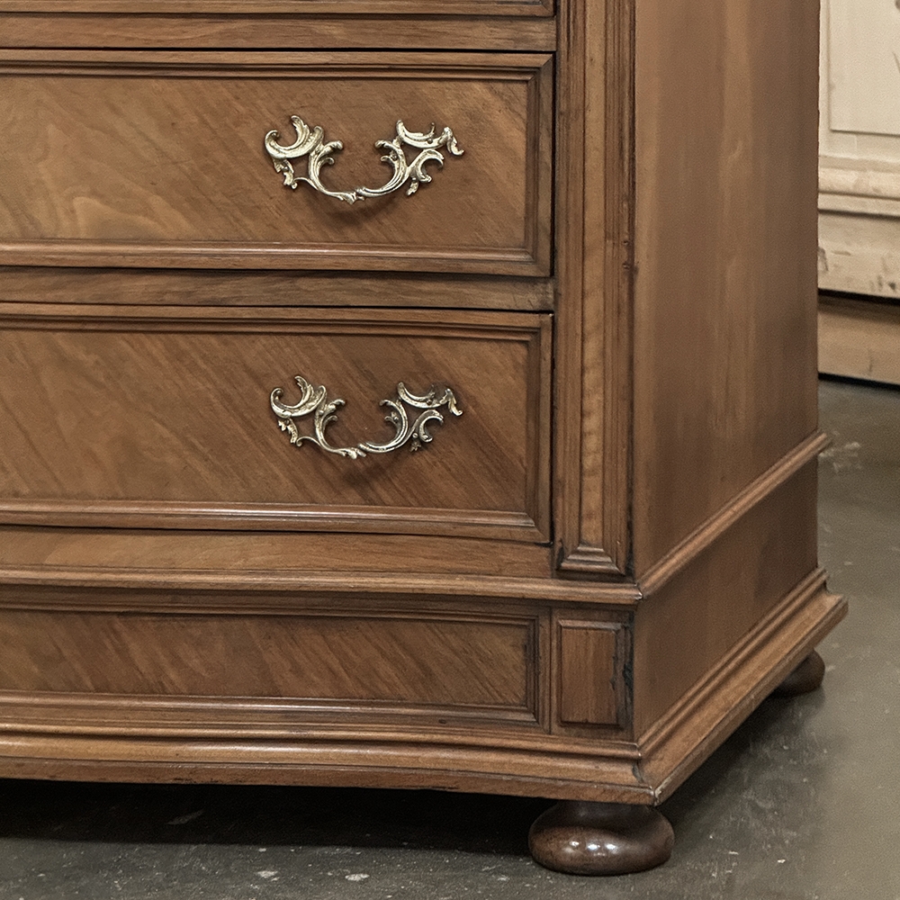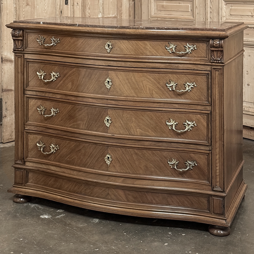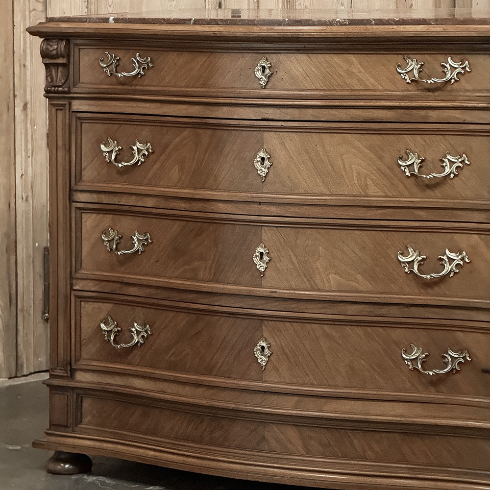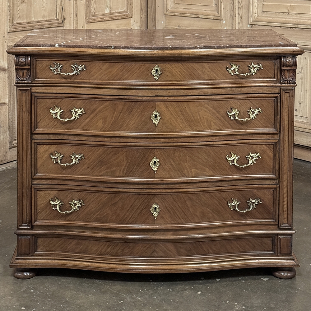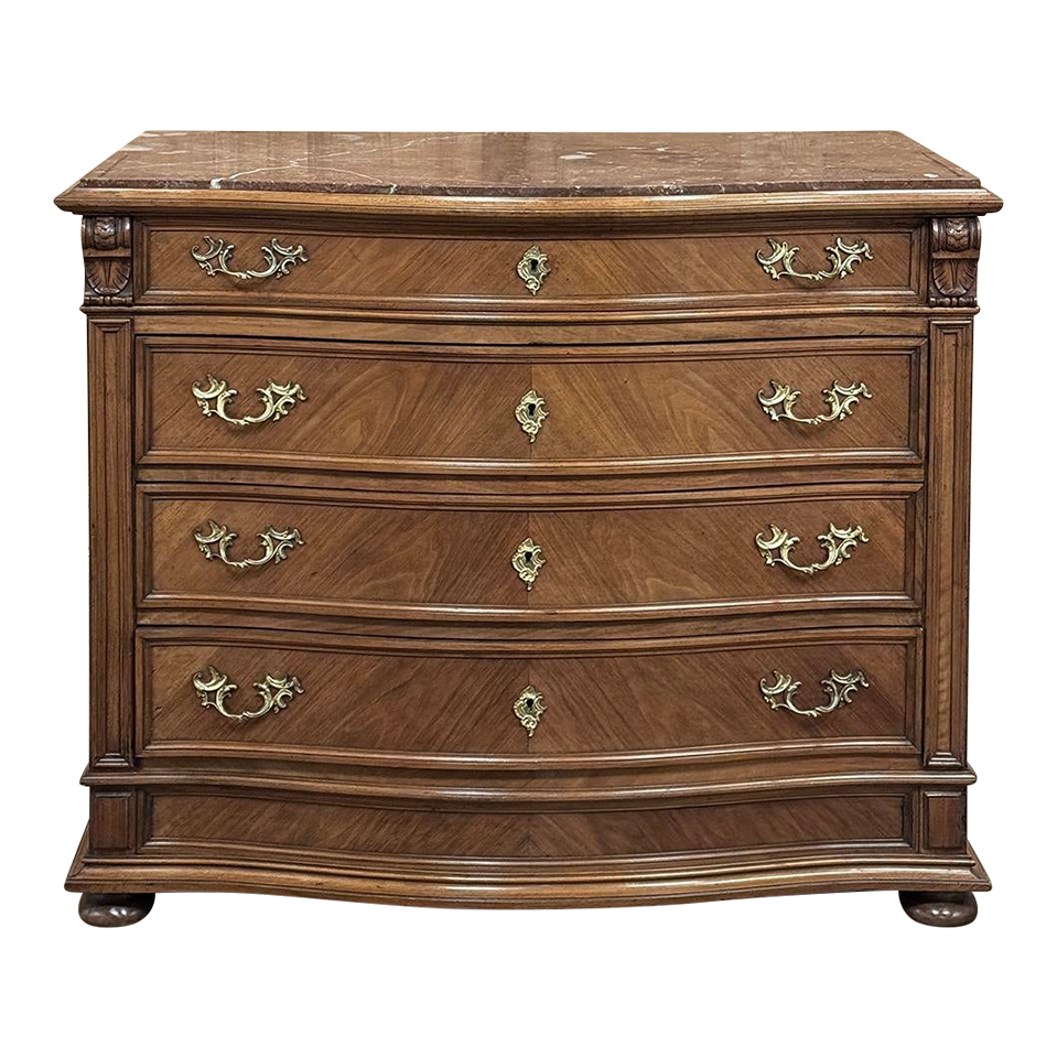 Antique Dutch Neoclassical Marble Top Walnut Chest of Drawers
