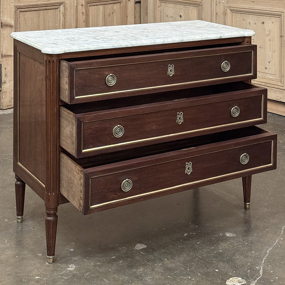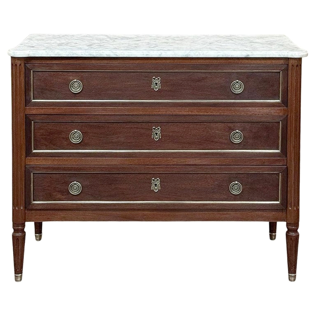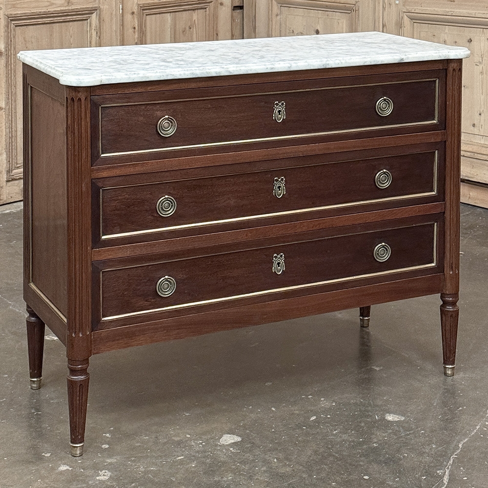 Antique French Louis XVI Mahogany Commode with Carrara Marble