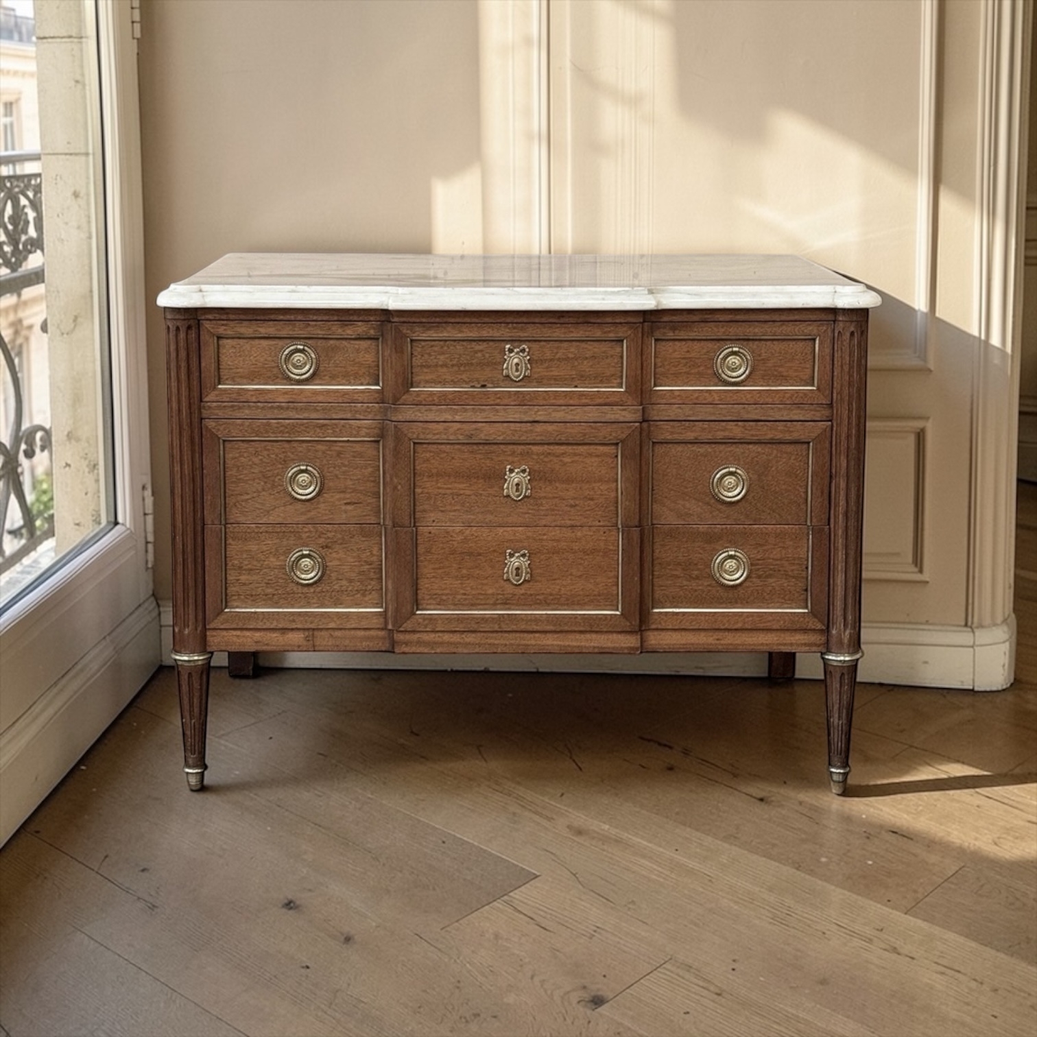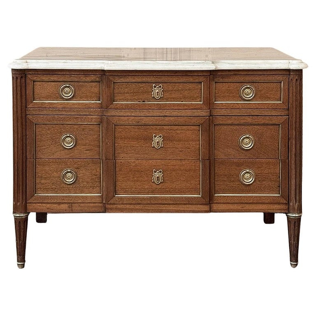 Antique French Louis XVI Mahogany Commode with Carrara Marble