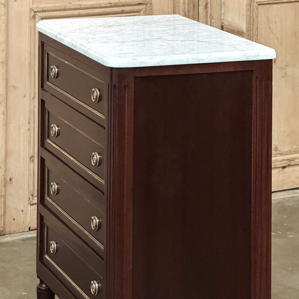 Antique Louis XVI Mahogany Chiffoniere-Petite Commode with Carrara Marble