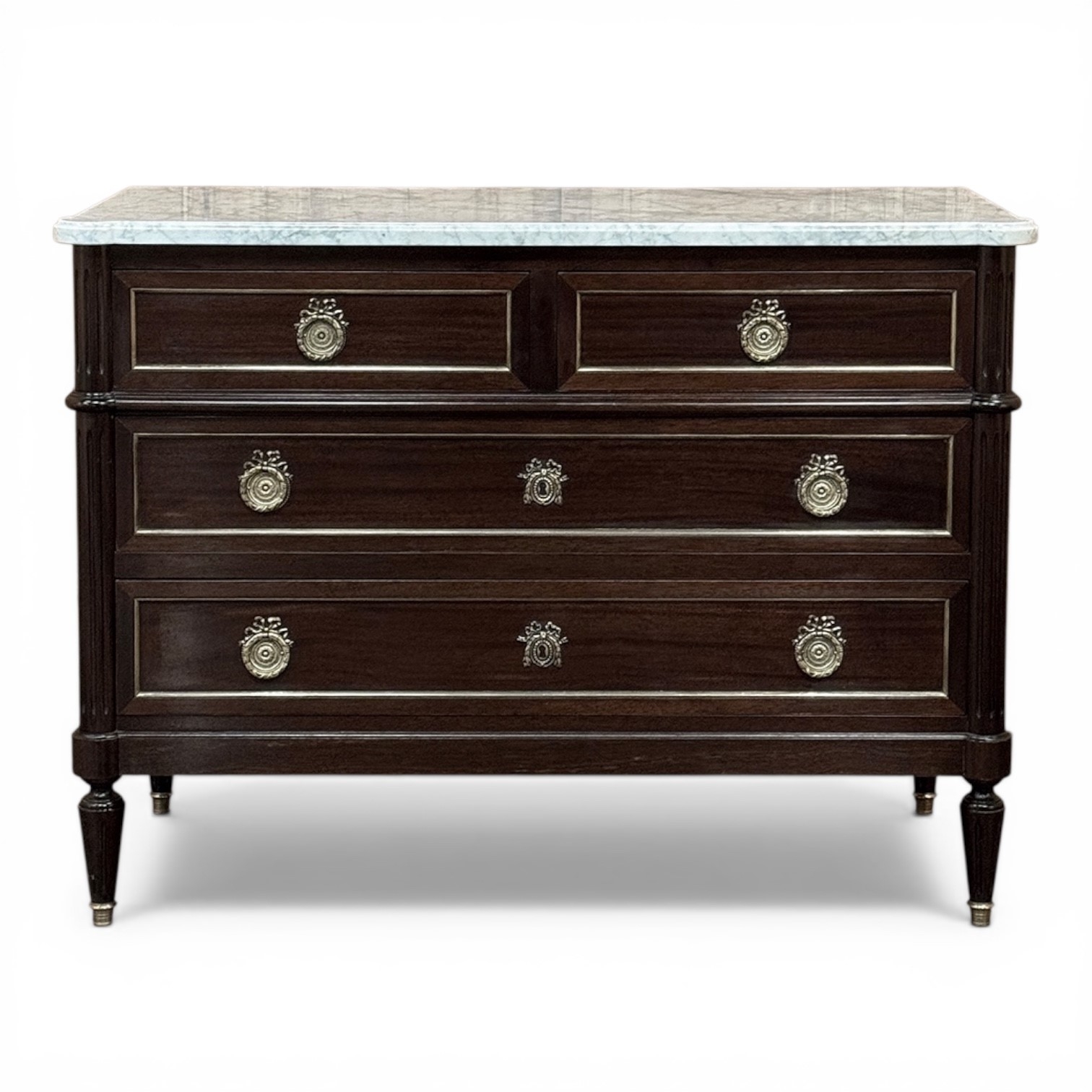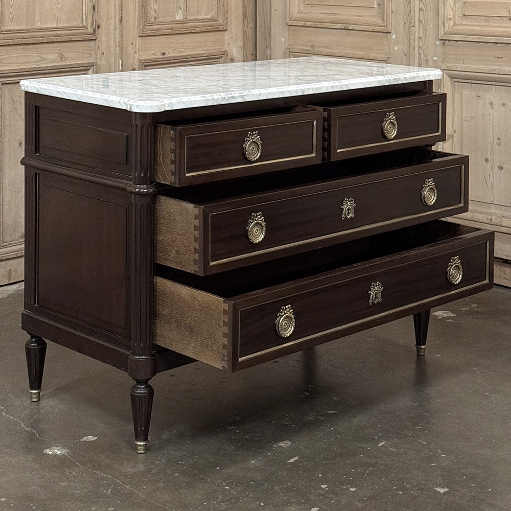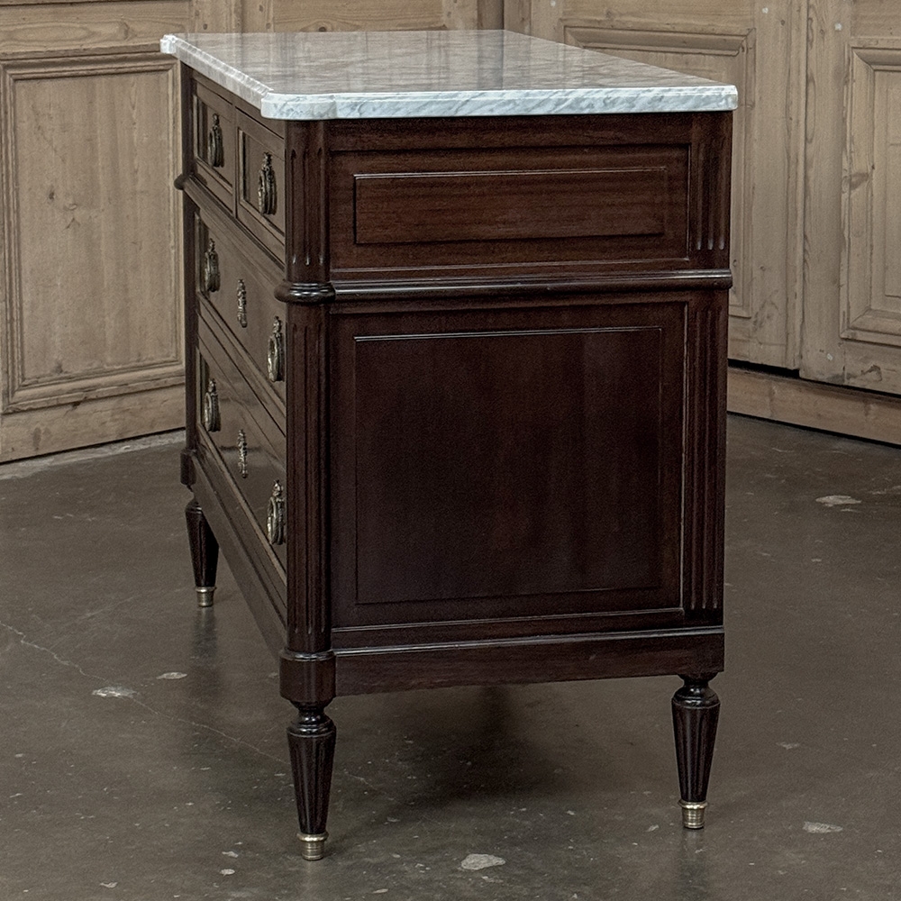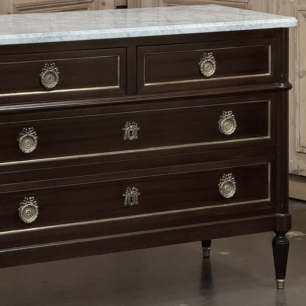 French Louis XVI Mahogany Carrara Marble Top Commode