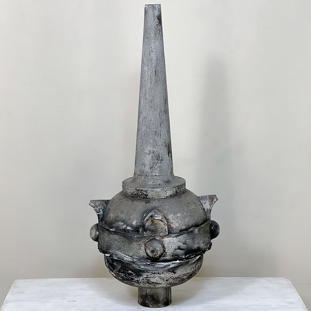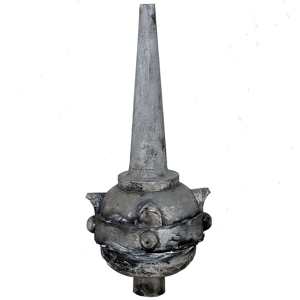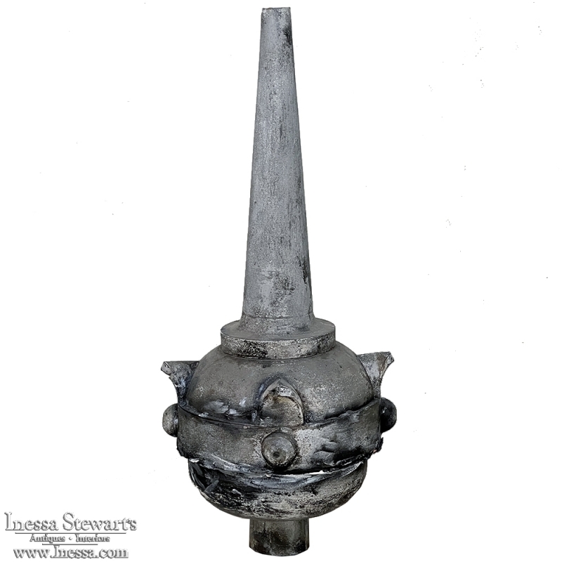 19th Century Tin Spear Point Finial originally was designed to top a spire on the roof, but has been saved from the ravages of time to create an intriguing decorative accent for your home. Of course, it could still be mounted atop the roof, but works equally as well in the garden, or anywhere an architectural accent will create a conversation starter.
