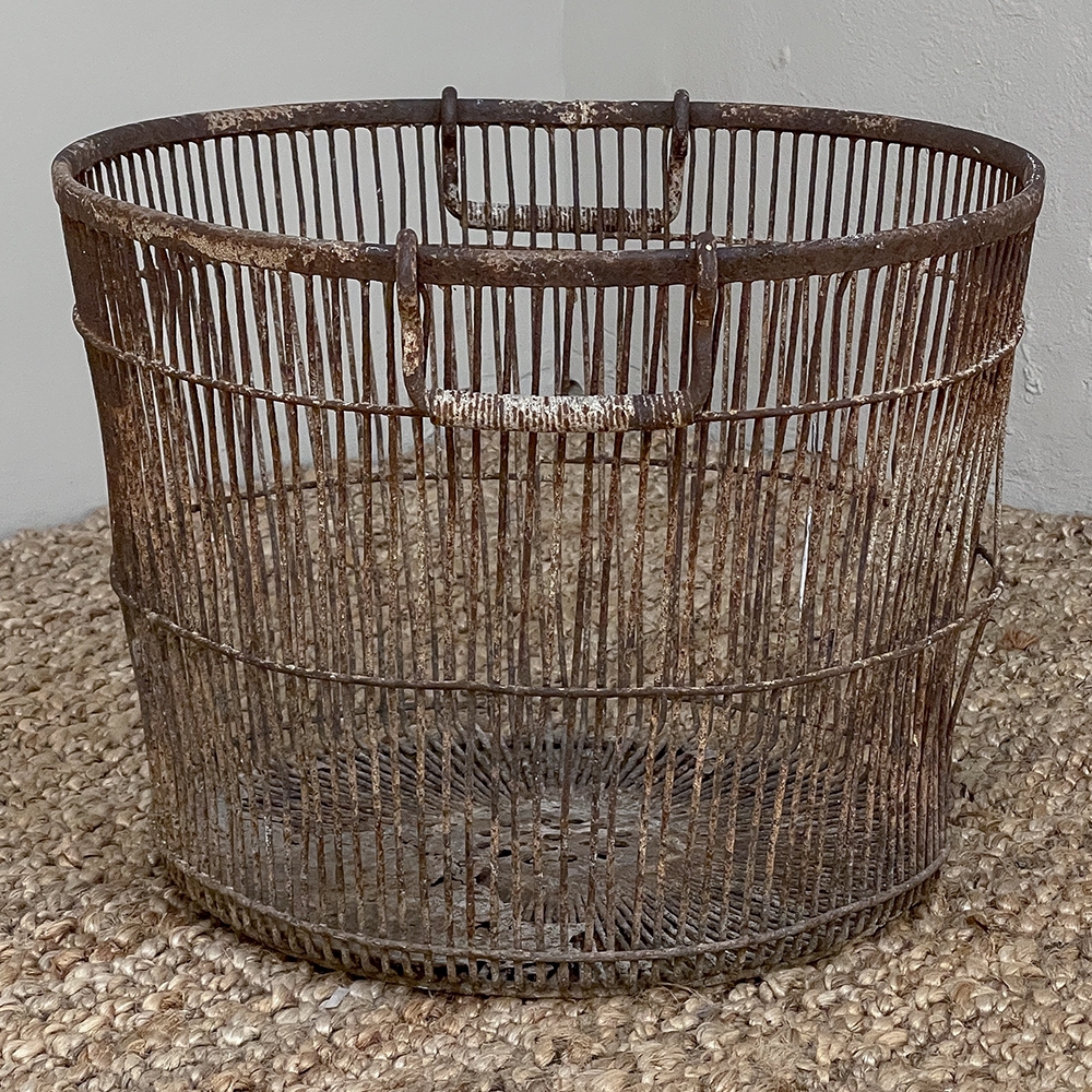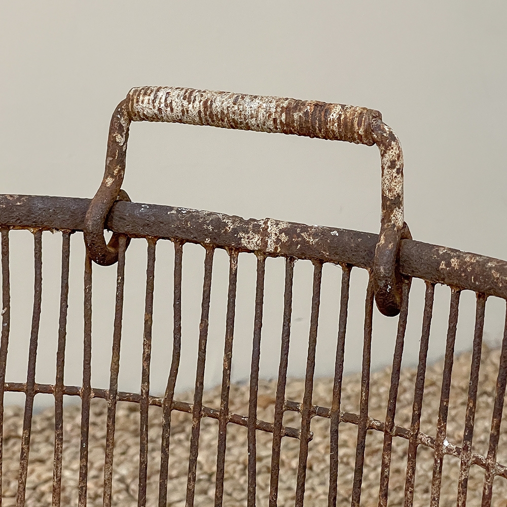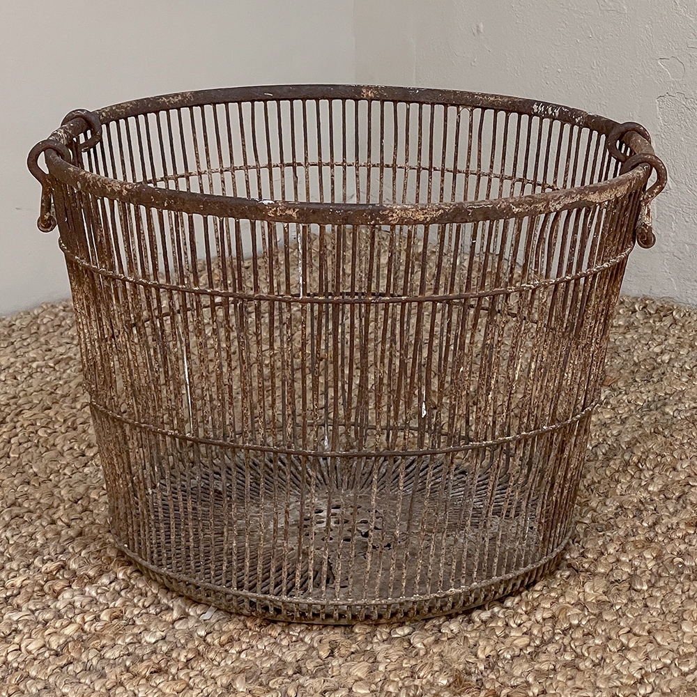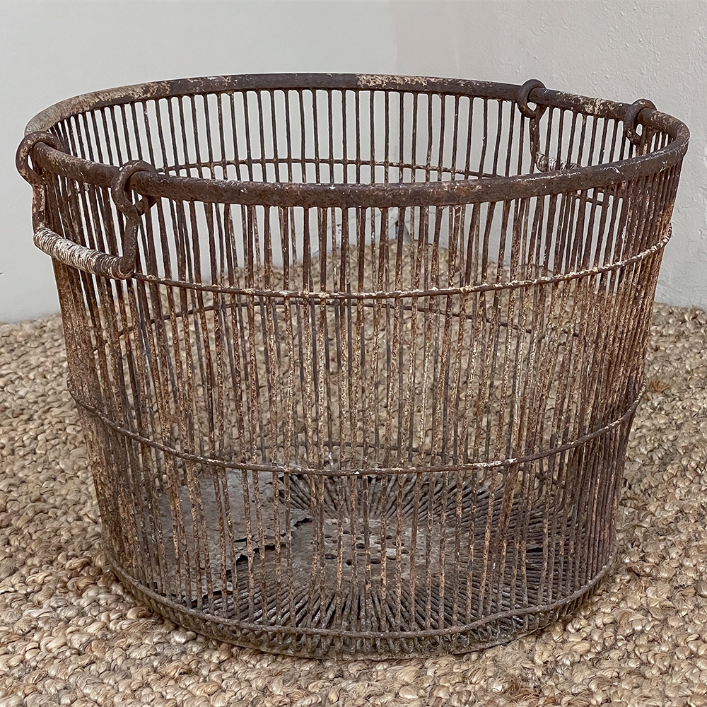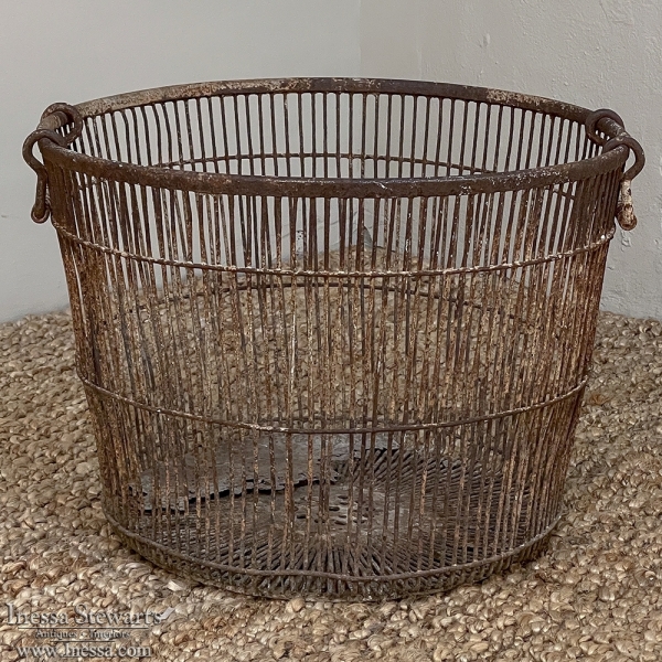 Antique Wire Harvester's Basket was designed to collect fresh fruit and vegetables, and the produce could be washed in the basket before being transferred to other containers. Perfect for a rustic seasonal display, one can place permanent flowers and fruit inside, or insert a potted plant.