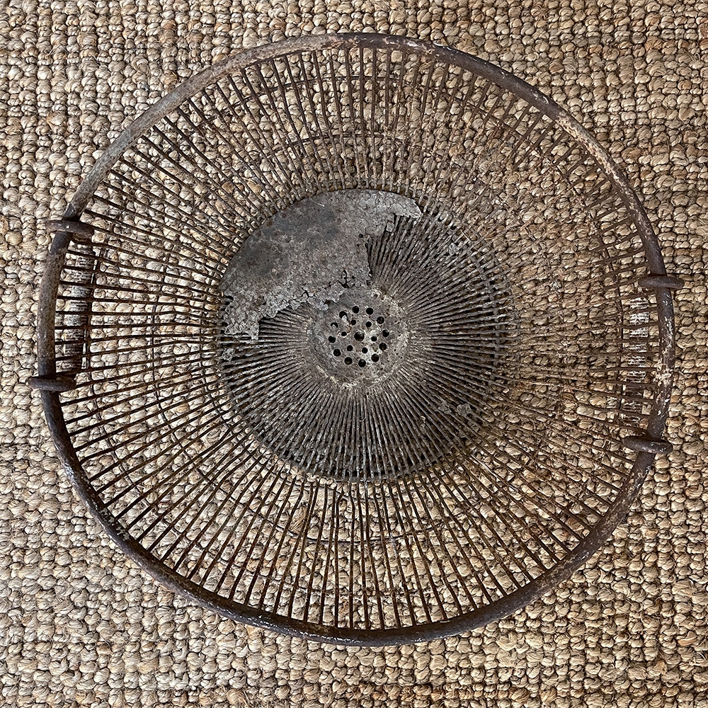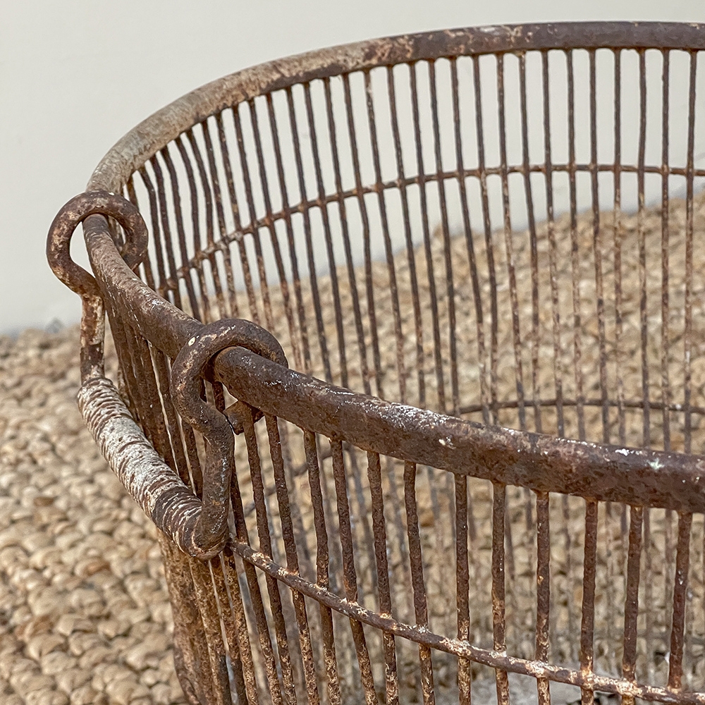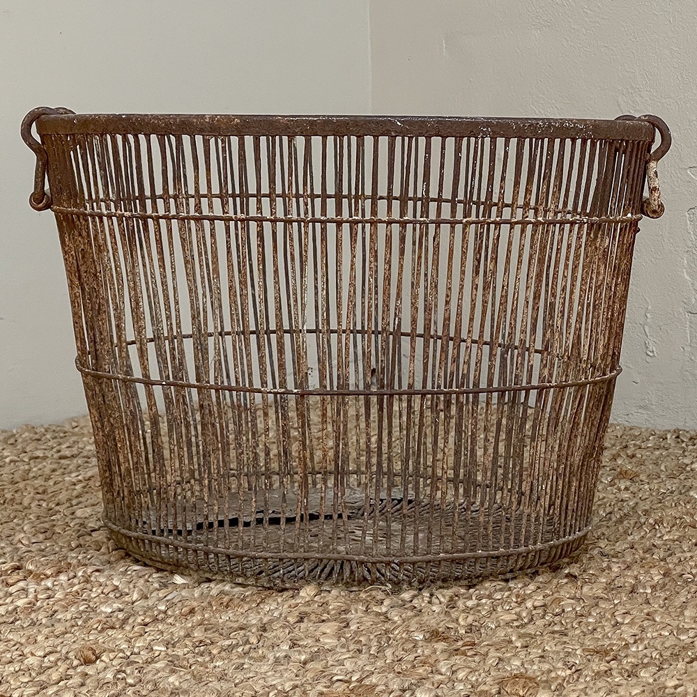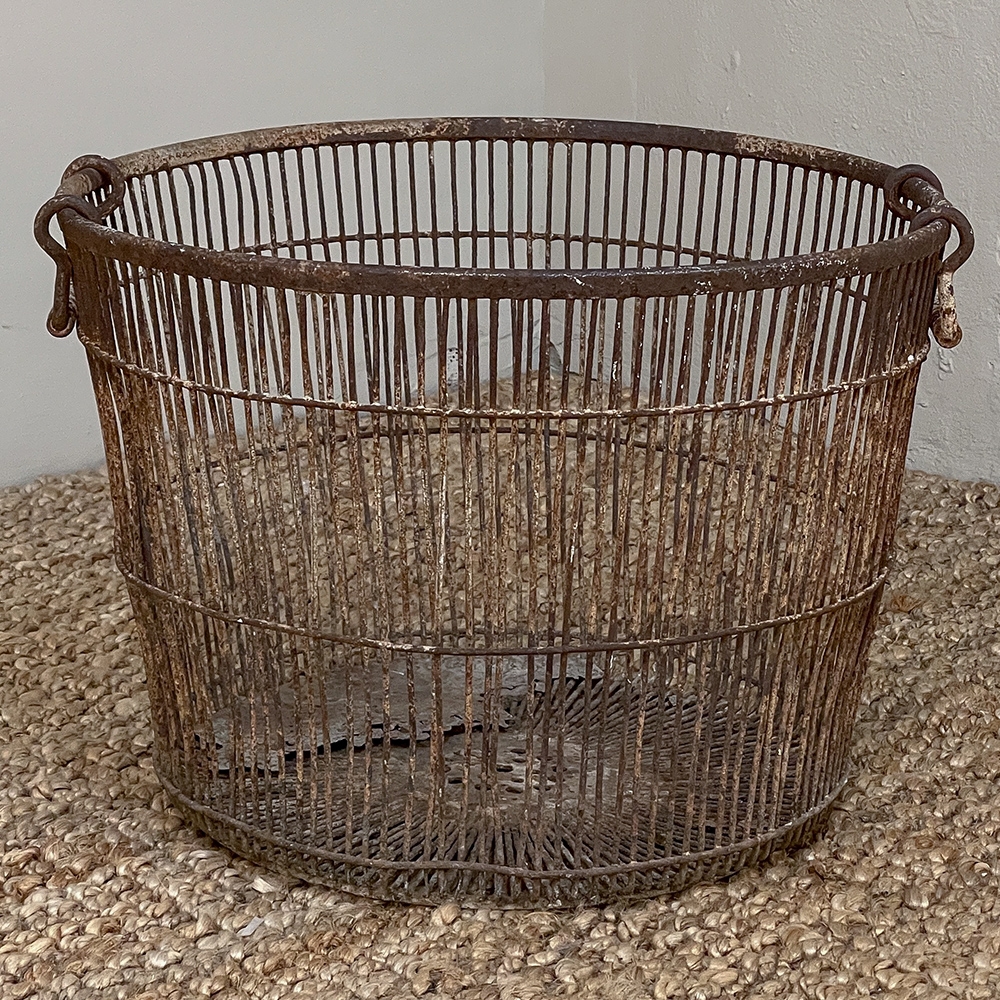 Antique Wire Harvester's Basket was designed to collect fresh fruit and vegetables, and the produce could be washed in the basket before being transferred to other containers. Perfect for a rustic seasonal display, one can place permanent flowers and fruit inside, or insert a potted plant.