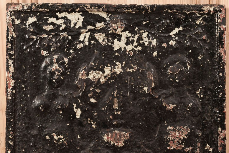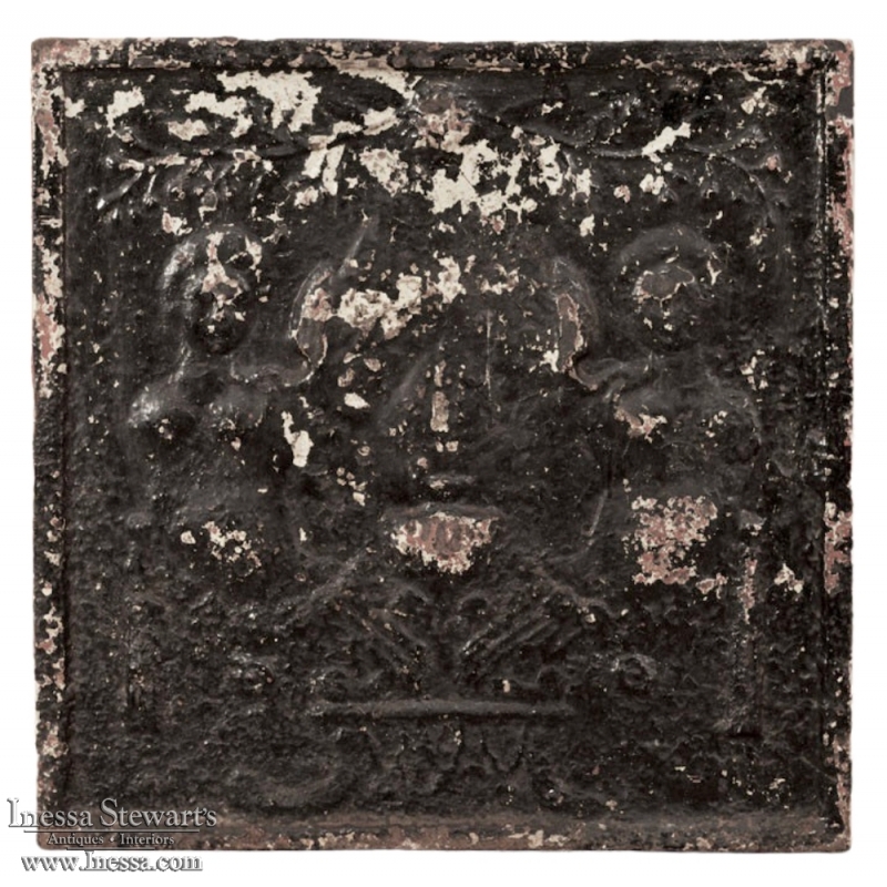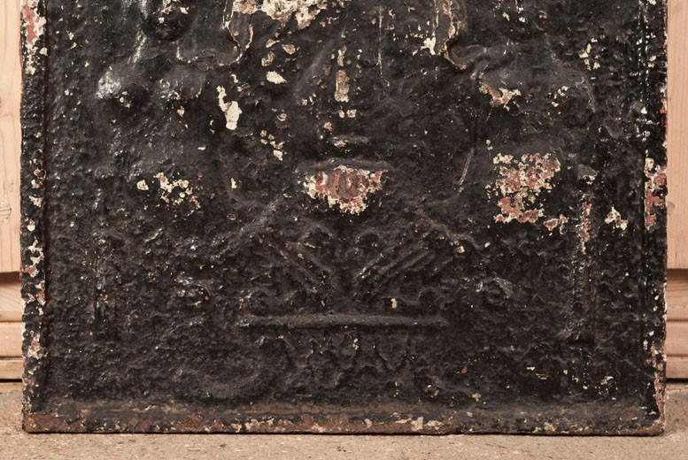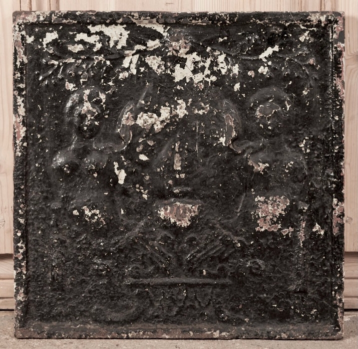 SaleBeautiful Louis Philipe Style French Fireback with dancing maidens in relief design. Originally used behind the fireplace to protect the masonry and reflect the heat into the room, Antique Cast Iron Firebacks like this example are now used as decorative elements, especially would look fabulous in the kitchen behind cooktops!
