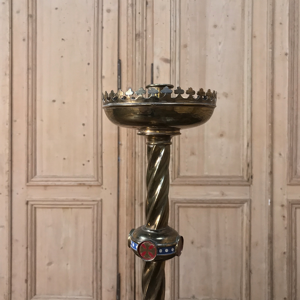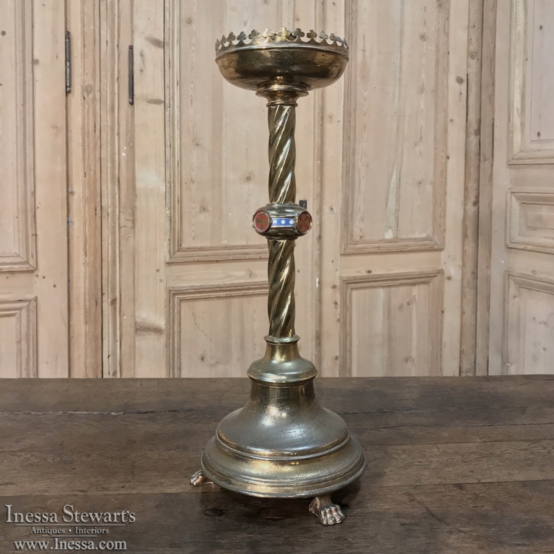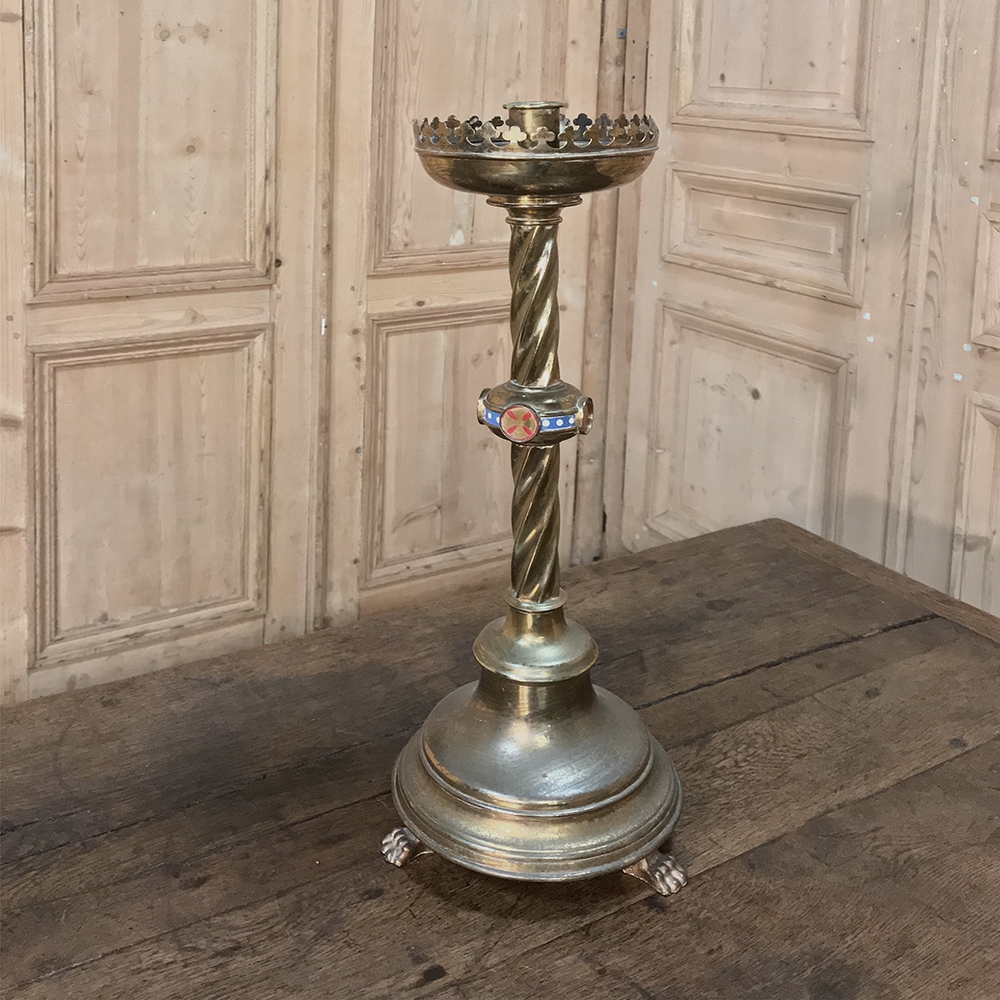 Sale19th Century Bronze & Brass Candlestick was embellished with Champleve enamel