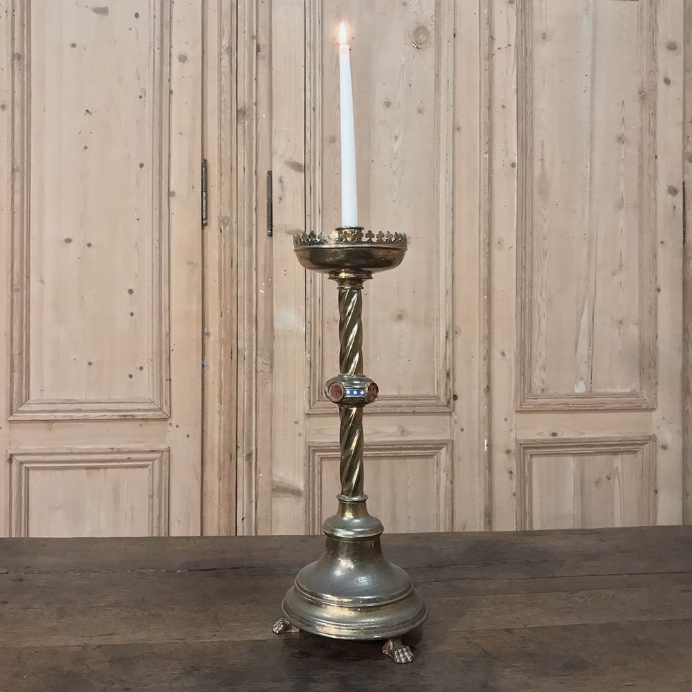 19th Century Bronze & Brass Candlestick with Champleve