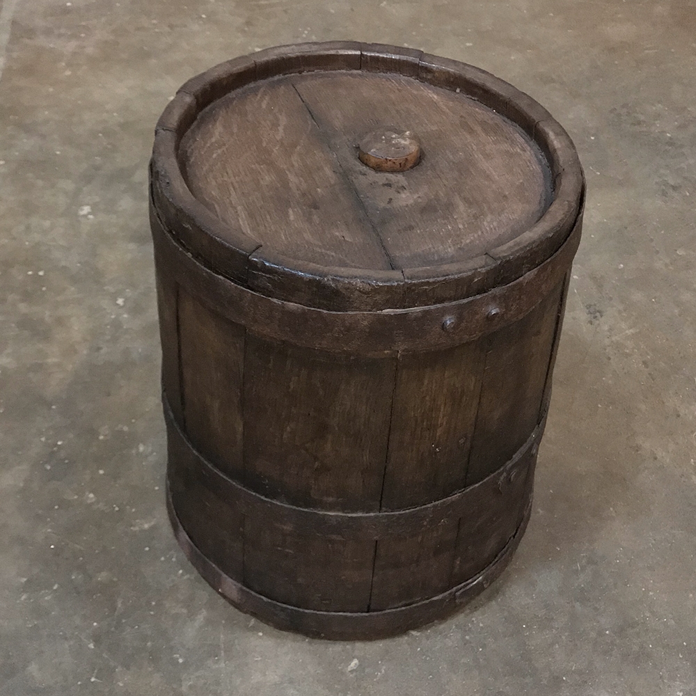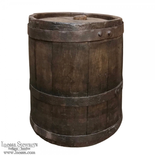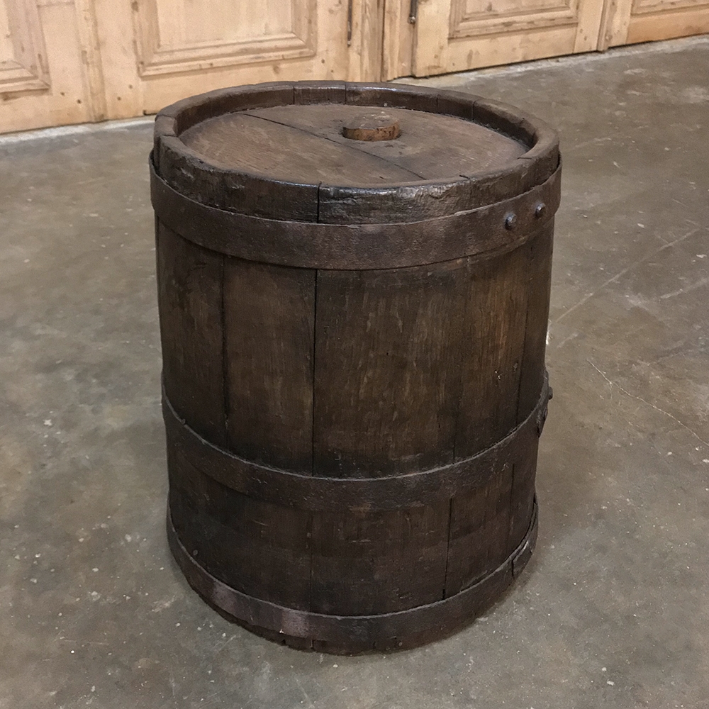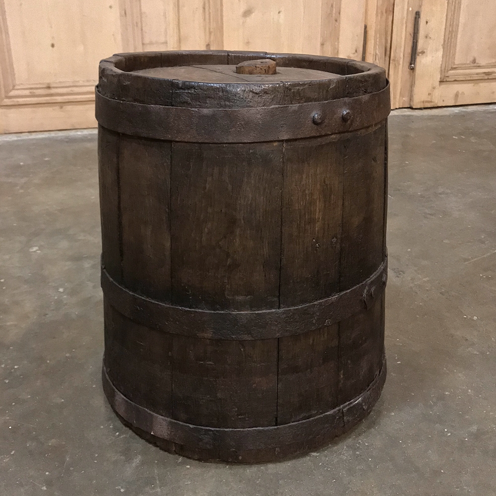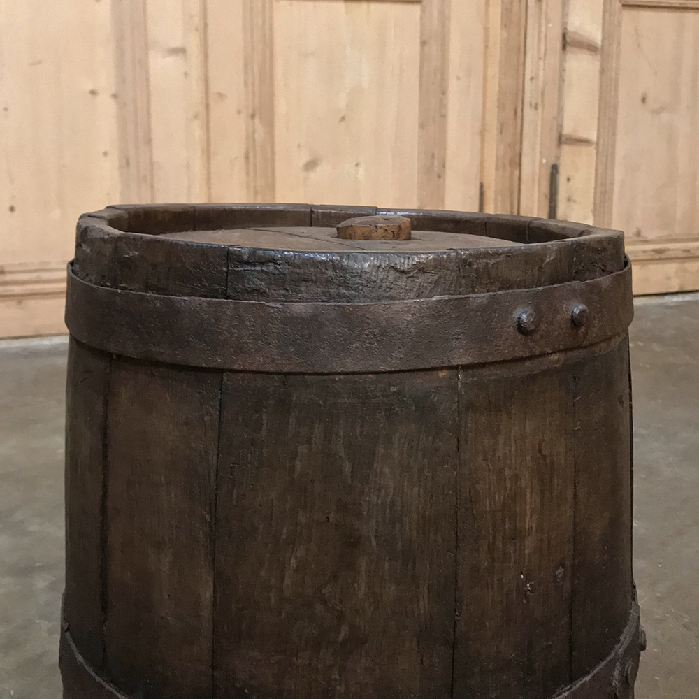 Sale19th Century French Banded Oak Stave Barrel is a charming relic that can provide wonderful rustic appeal in today's modern and casual decors!